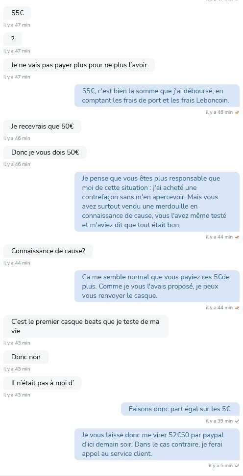 Le 23 septembre 2023 à 23:04:58 :Si t'as payé sur Paypal tu peux directement faire litige sinon c'est à la gueule du client