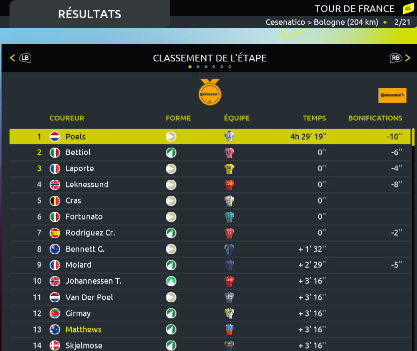 Étape 2, victoire du marlou Poels![]()