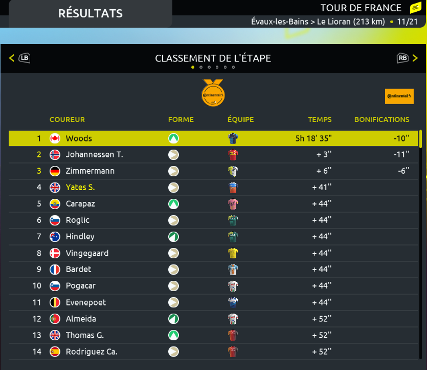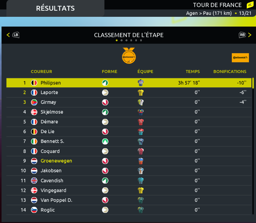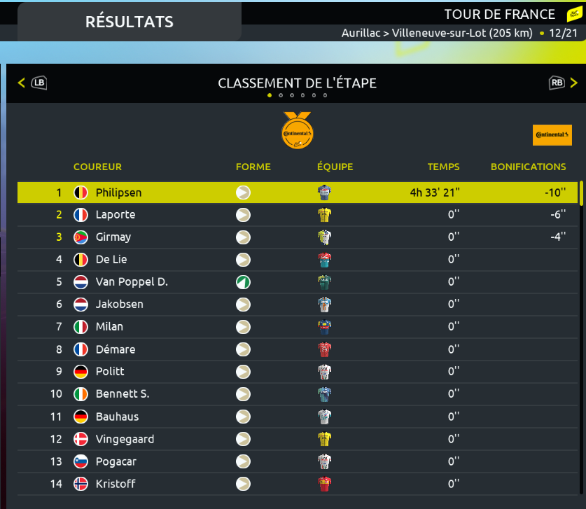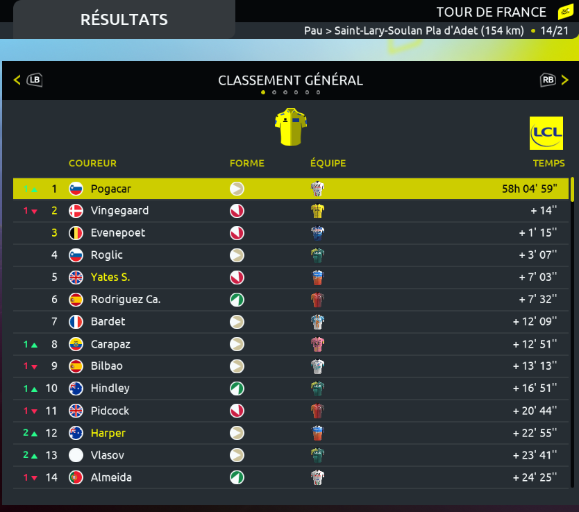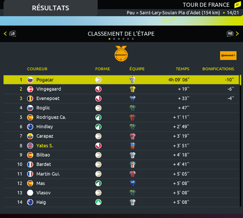 Pogi prend le jaune, et pour une fois l'étape m'a paru assez crédible![]()