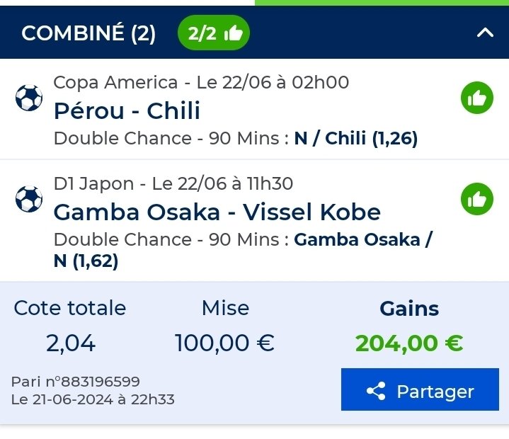 Je suis a 2-0 pour l'instant . Bientôt le triplé