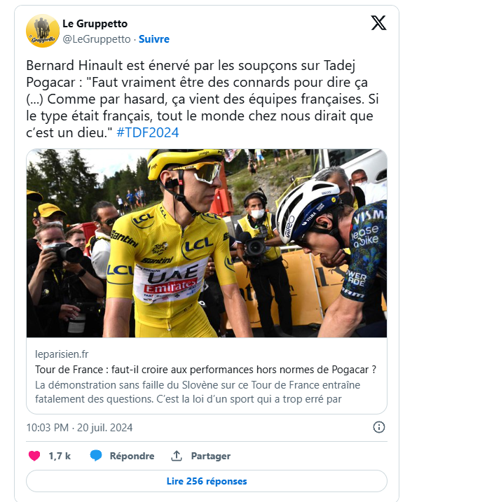 Il n'y a qu'à voir Gaudu depuis 24 mois, quelles garanties pour élever ses perfs ( et le Martin en a grandement besoin) a-t-il pu lui être promis ?Madiot a du lui faire un pont d'or au Michel Onfray sur roulettes, FDJ is the new Totalenergie