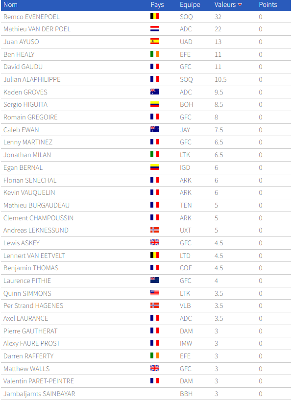 Vu que mon rôle est d'équilibrer, ce serait utile.ça reprend plus tot que l'année derniere cette année avec le retour du Down Under, c'est aujourd'hui la date limite pour faire son equipe khey
