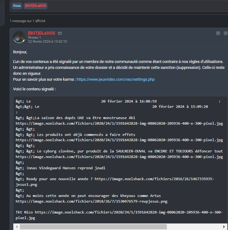 1 an que tu me signales sans arrêt et je me prend des bans en pagaille