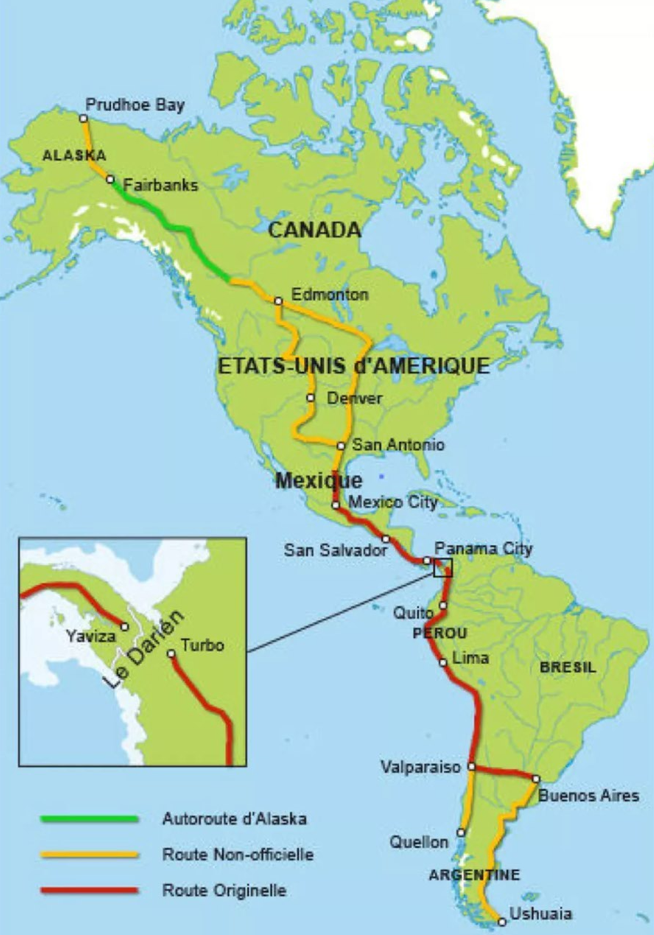 De l'Alaska a Ushuaïa au sud de l'Argentine vers la PatagonieFaut faire un petit peloton de khey marlou car j'aurais besoin de relais