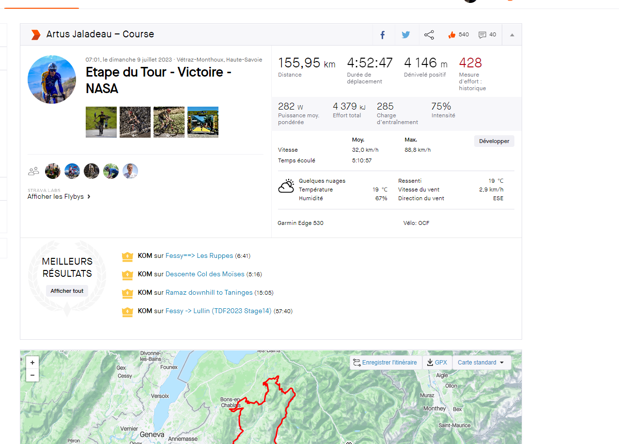 et le niveau était trop élevé, j'étais largement au dessus de ma FTP, j'aurai tenu 15 tours max (crit de 1,1 km avec la bosse de 500 m