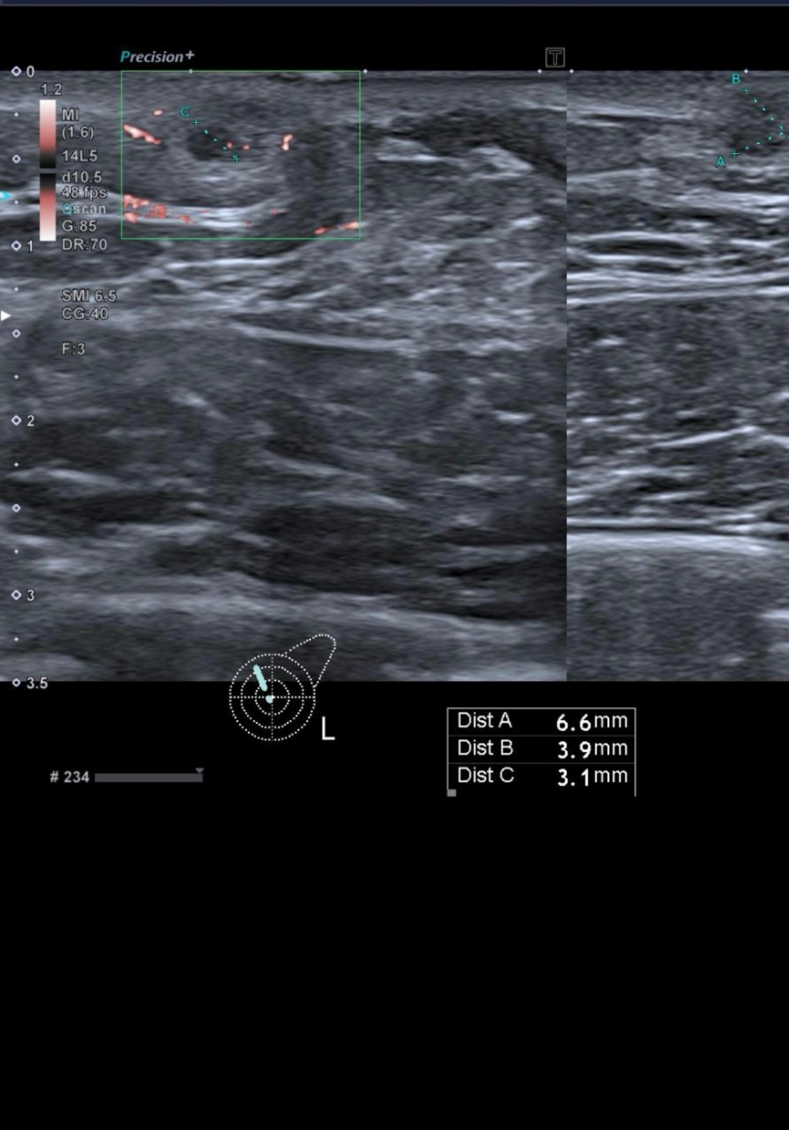 Salut y a des radiologues dans le coin ?La distance C ici correspond à quoi svp ? Ganglion lymphatique sur l’image