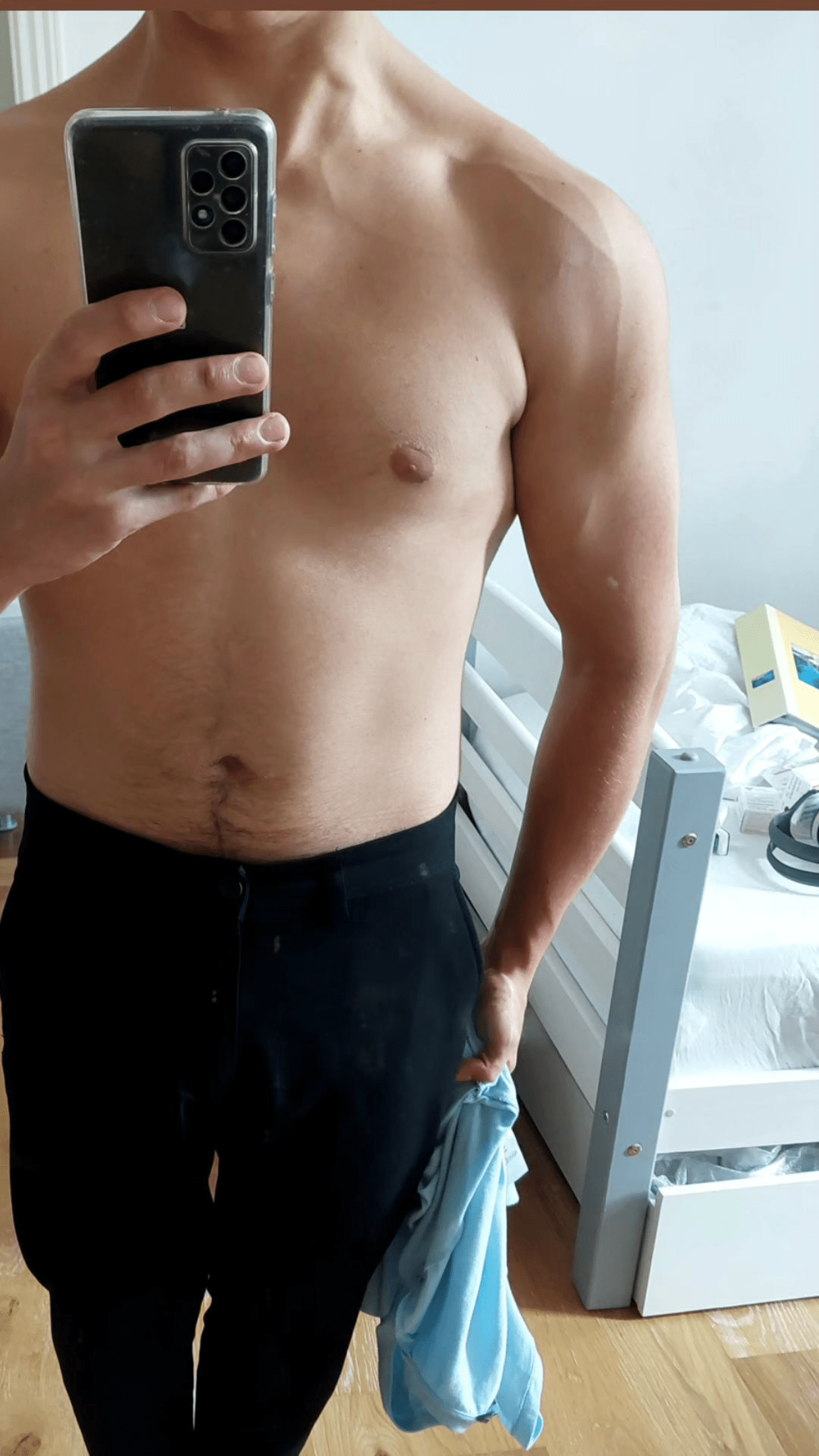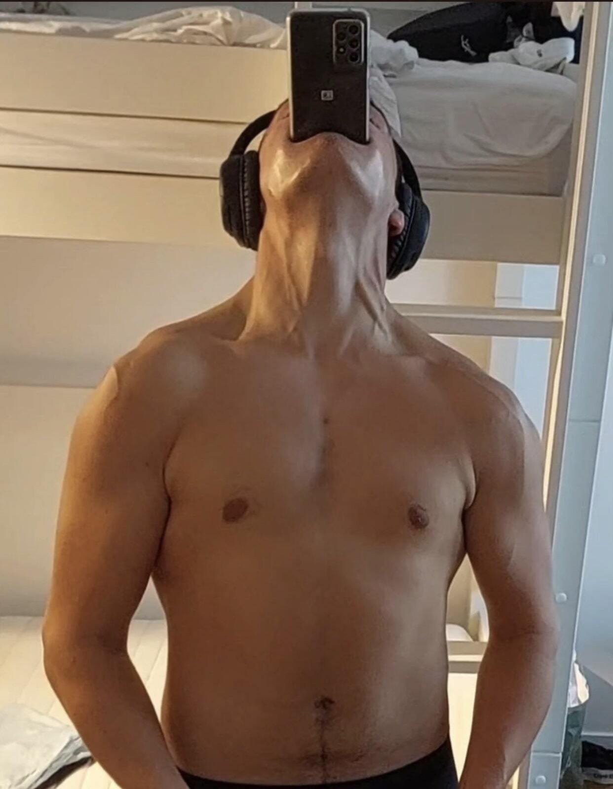 Ne sois pas ridicule. Tu mélanges tout. Tu fais de la musculation, certes, mais les jambes font partie de ça. Tu n'as qu'à voir dans les concours. Ils sont tous en slip.