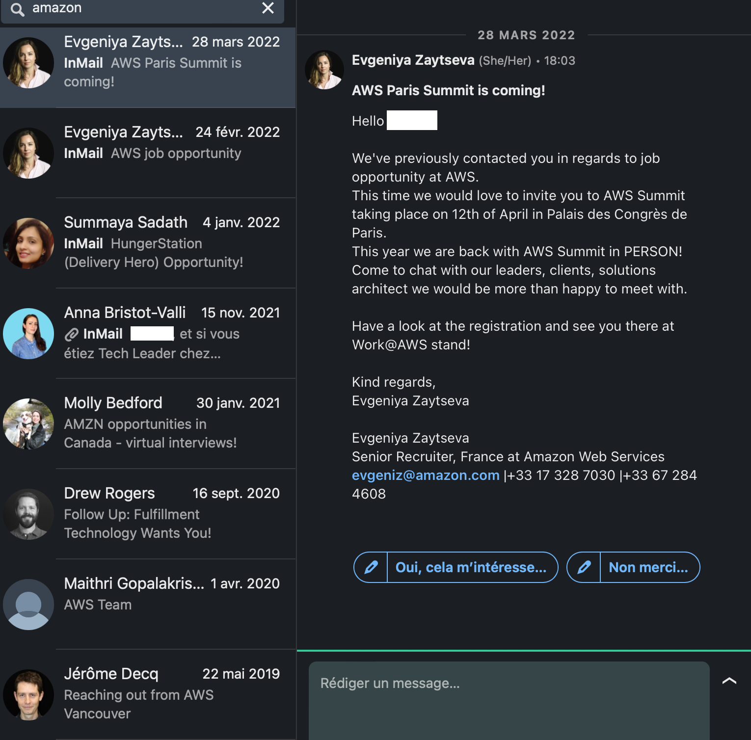 > > Aucun des deux, plutôt contacté par des pointures du ecommerce et du web mondial