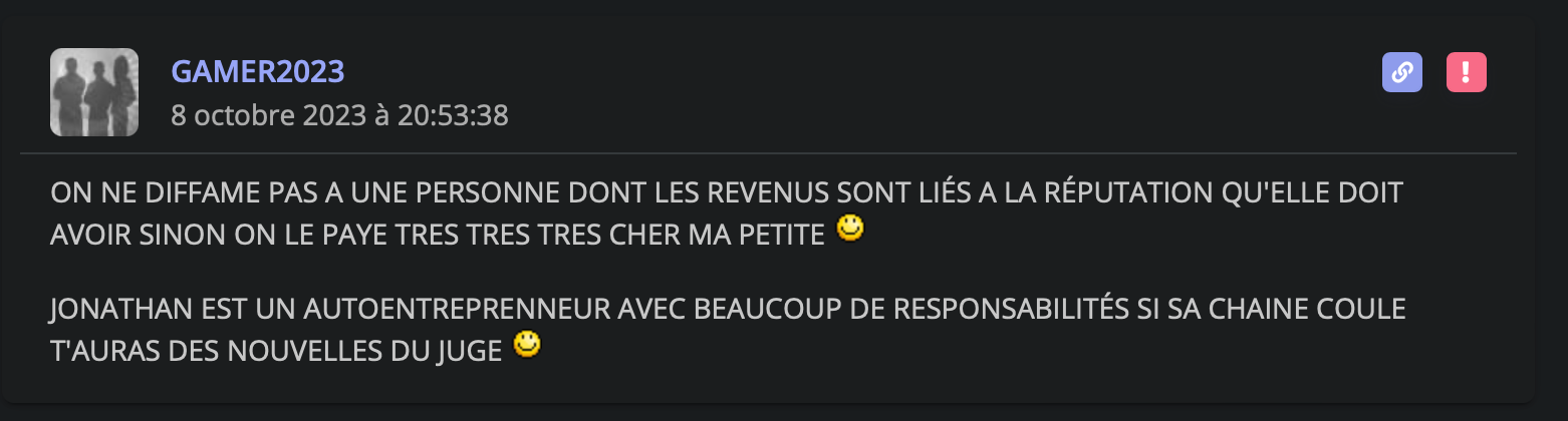 Jonathan le prédateur, tu as pris les délires d'incel du 18-25 trop au sérieux. Surtout Chadstérion, les simps, les femmes toutes manipulatrices, etc...