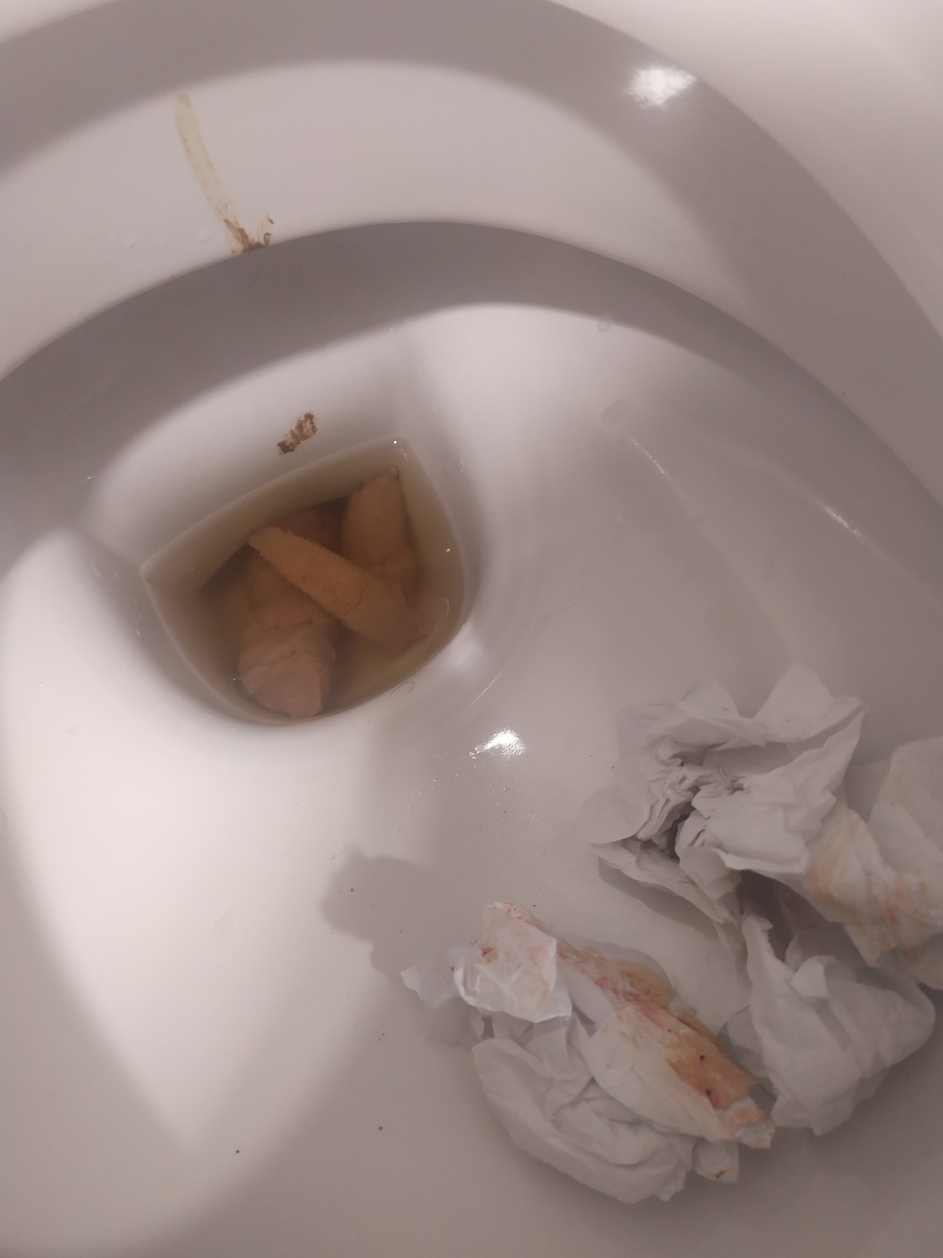 Je n’avais pas fait gaffe mais les chiotes sont mal foutues, le trou d’évacuation ne fait que 4/5 cm environ de diamètre. Trop peu pour que ma merde ne passe.