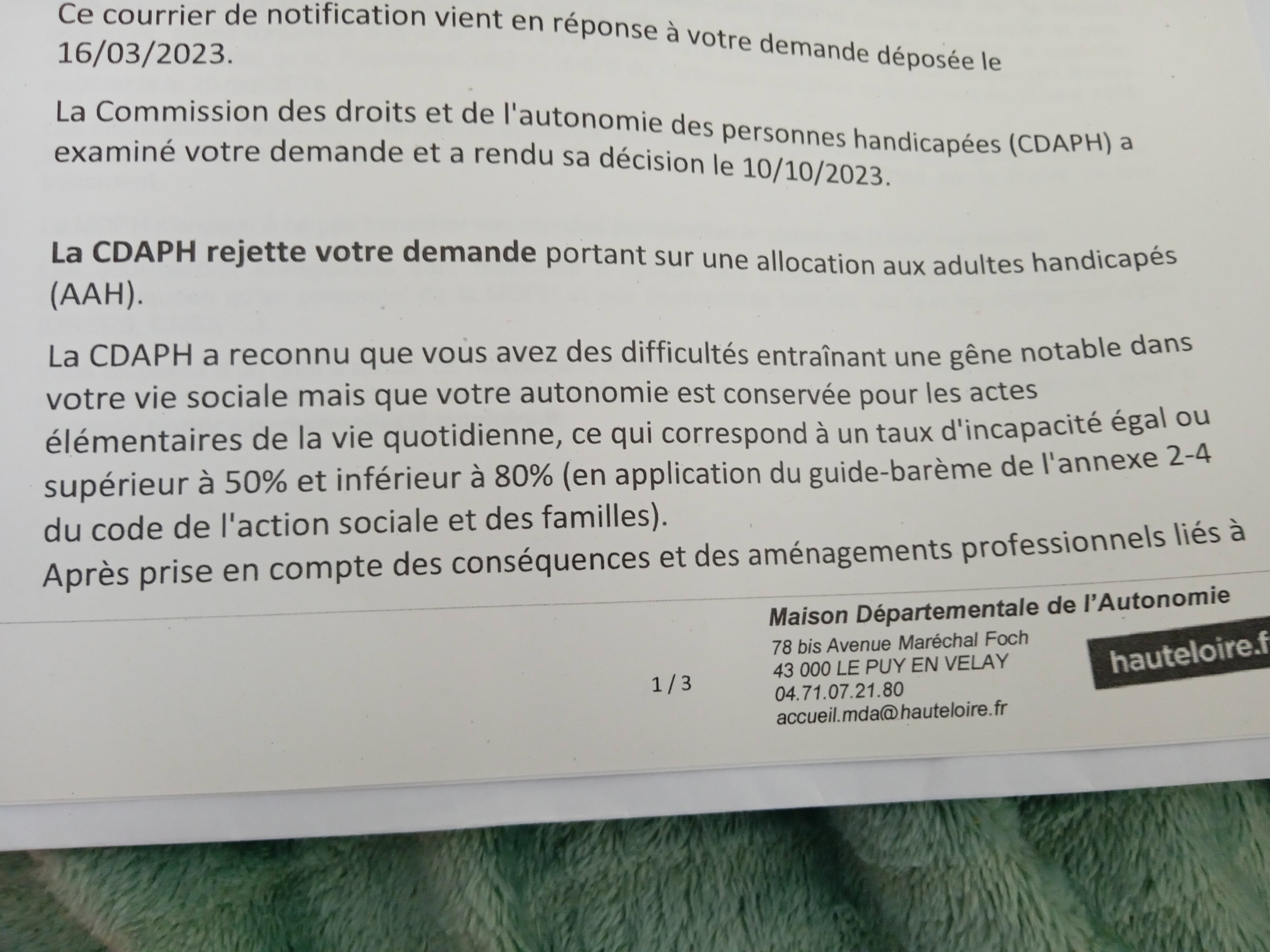 C'est pas normal que j'ai pas l'AAH vu ce que j'ai. Je peux même pas faire 200m pour aller au bureau de tabac seul c'est pour vous dire...