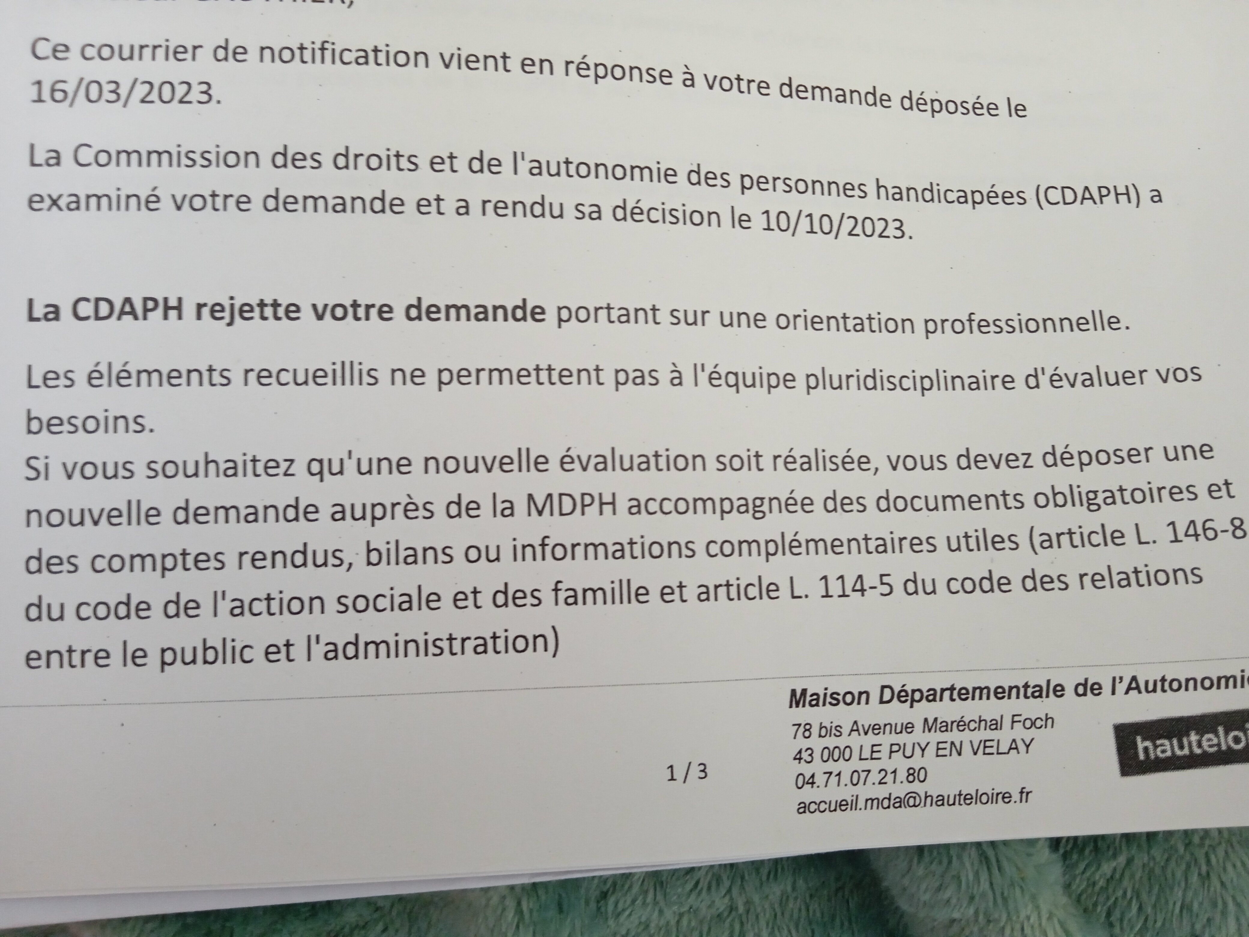 Slt tout le monde j'ai rdv demain avec l'assistante sociale pour faire un recours car j'ai déposé le dossier en mars mais ma santé am décline en juin et c'est a partir de ce moment là que j'ai repris les médocs. Escitalopram + Xanax