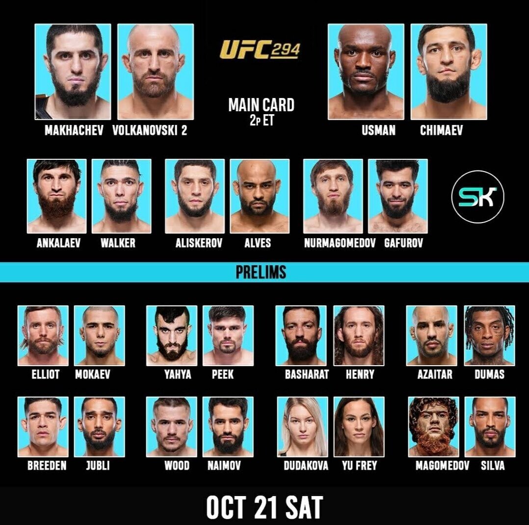 UFC 294 / SAMEDI 21 OCTOBRE à L'Etihad Arena à Abu Dhabi