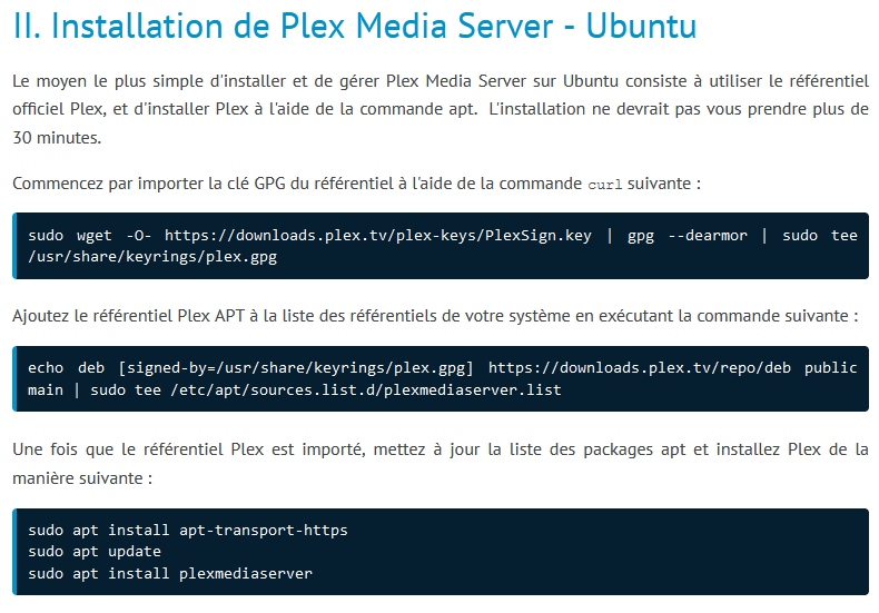 Par contre vraiment entre faire "télécharger plex" into "cliquer sur l'installateur" VS "ajout du référentiel" "téléchargement" "installation" "création des dossiers" "attribution des droits pour les dossiers" "lancement du logiciel" ...