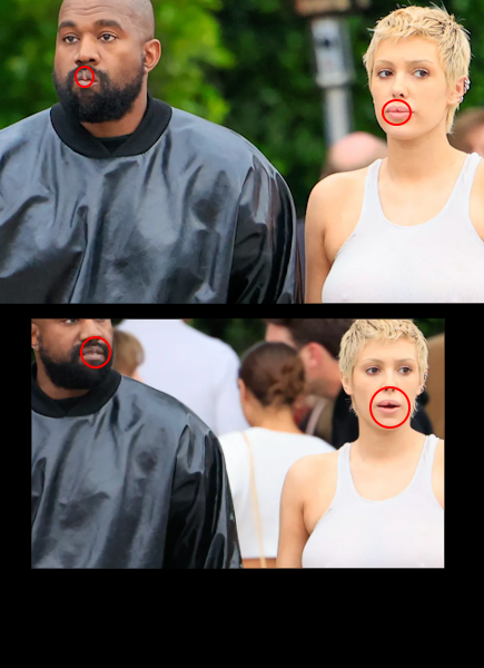 en gros Kanye West a une barre rose au milieu des lèvresSa femme on dirait qu'elle a un morceau de lèvre en moins à cet endroit