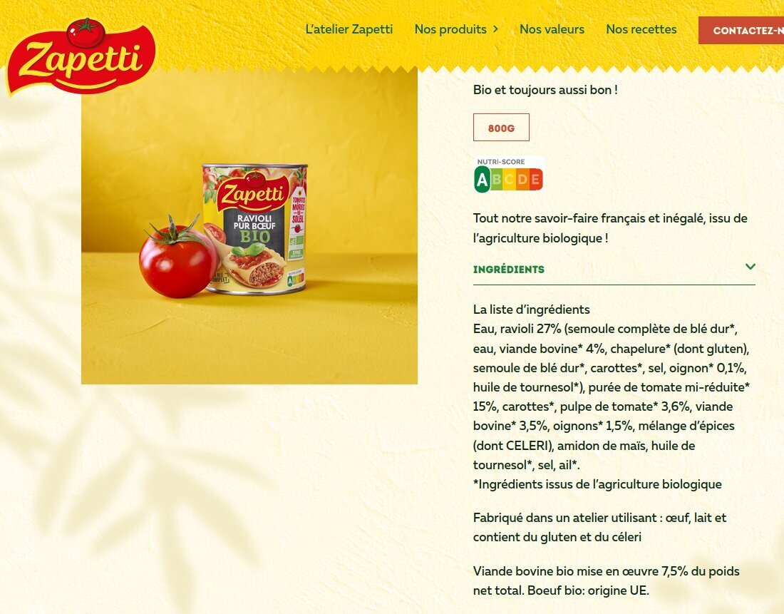 Edit: Non en fait 3.6% dans la sauce et 4% des 27%, soit 1% dans le raviolis