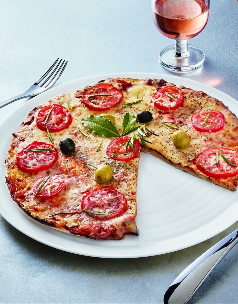 Le goût - pâte à pain, jambon, tomate, olive, champignon, fromage, poivre, herbe - est sublimé par la saveur du bois