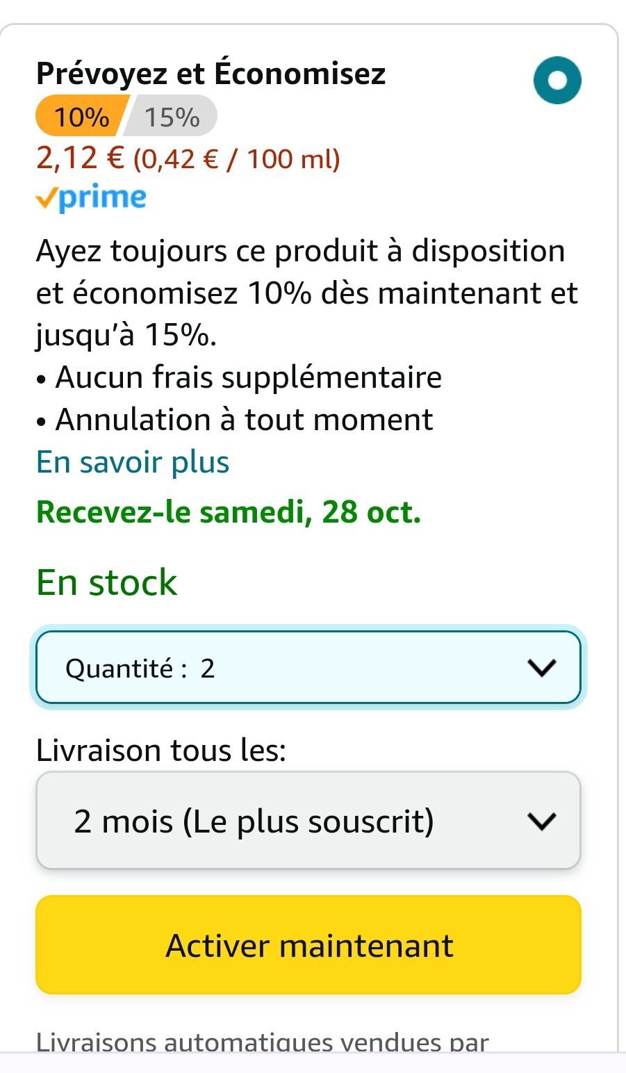 Prévoyez et commandé sur Amazon