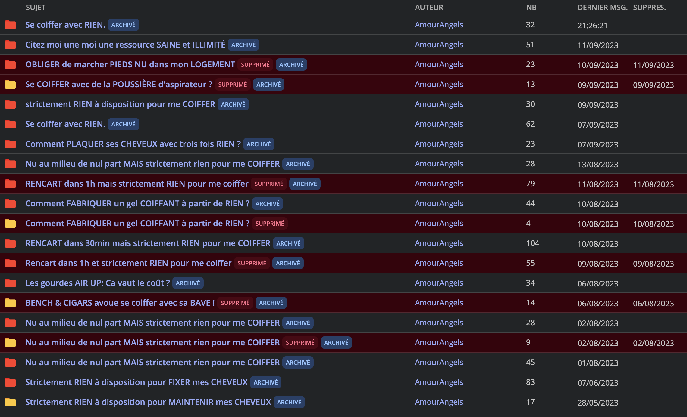 Le 15 octobre 2023 à 21:49:48 :tu boucle dessus depuis des mois, pourquoi tu coupes tes cheveux il suffit de les laisser pousser