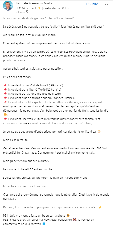 Dieu merci il reste des 90+ qui comprennent l'apport de notre génération au monde du travail :![]()