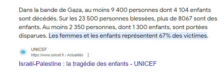ça ne change rien au fait qu'il y ait eu des dizaines de milliers de victimes civiles palestiniennes en moins d'un mois
