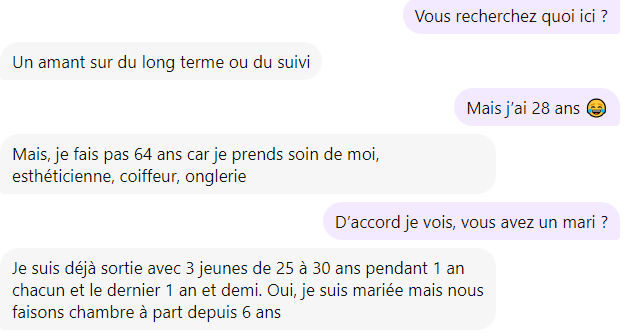 Y'a même une cougar de 64 ans qui est venue me parler, elle a déjà pécho 3 jeunes ahiii
