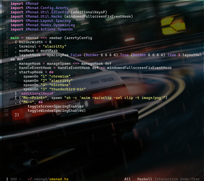 Hackshell c'est meme pas du linux c'est un langage de programmation fonctionnelle c'est un bail que t'as jamasi vu regarde mon xmounad.hs