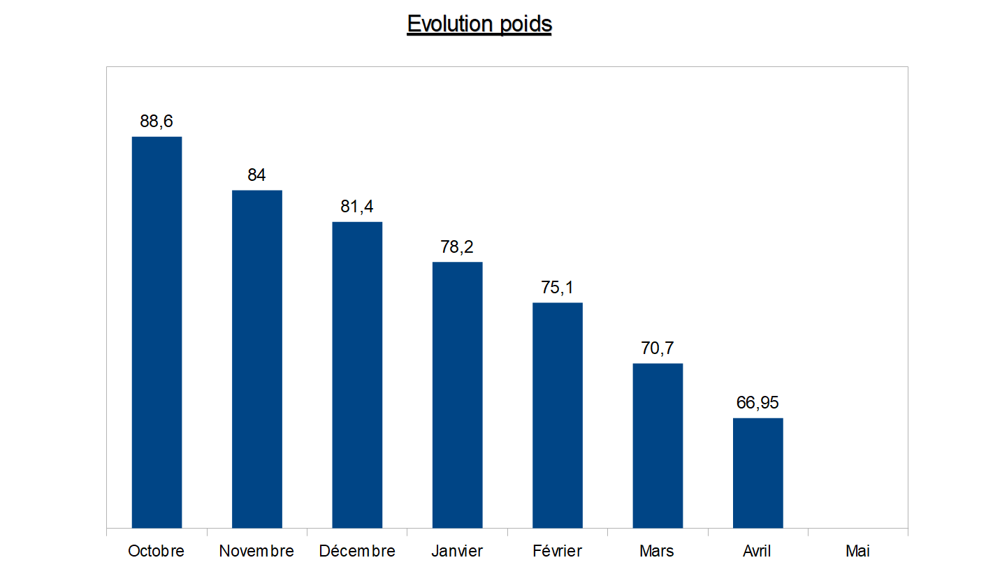 Poids au 1er avril : 66,95 kg