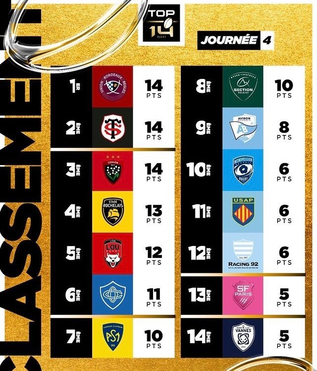 Que des résultats ultras serés, on a eu seulement une raclée (usap Clermont)et Toulon Vannes