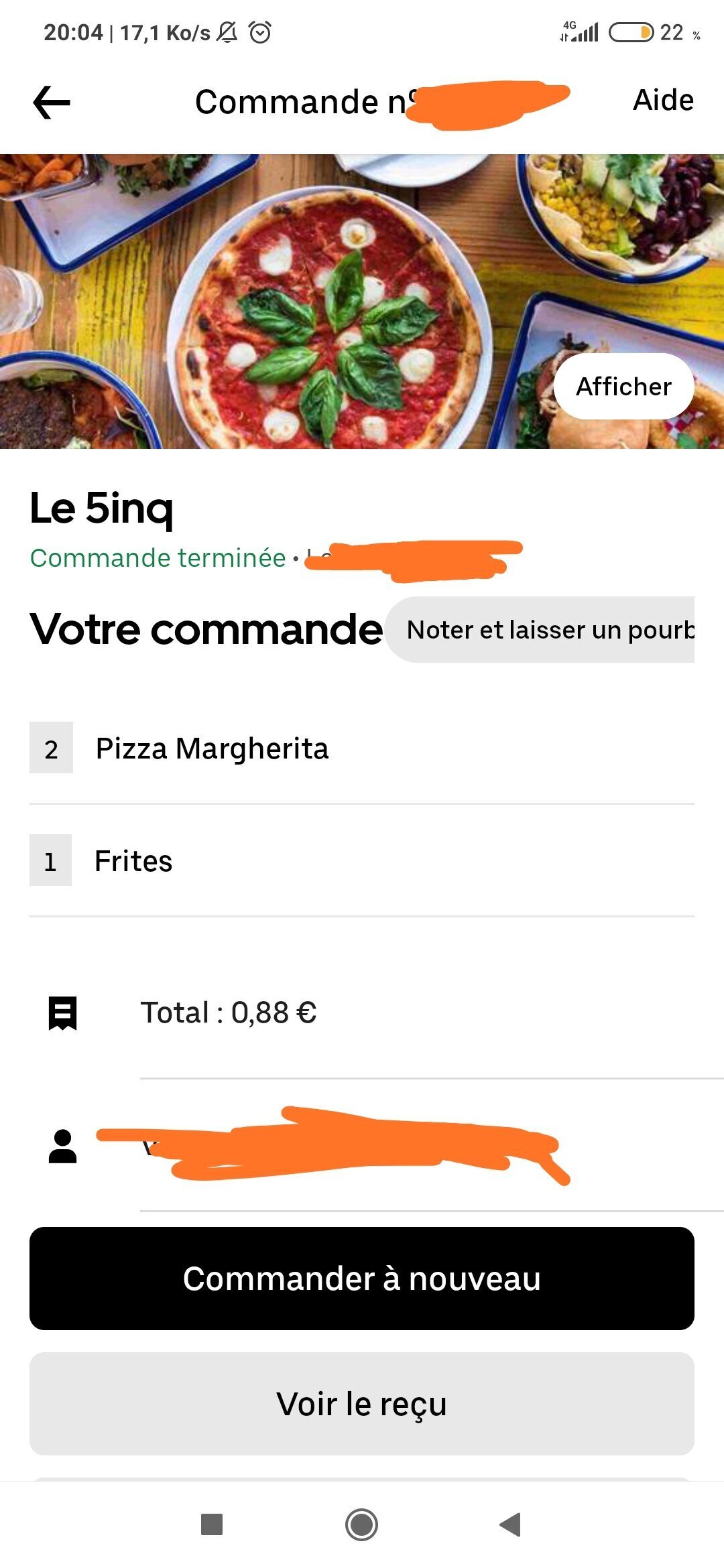 Au passage les frites avec un couvercle d'aluminium une épaisseur qui a fait voltiger les frites dans le sac du livreur, restaurant 0 tout