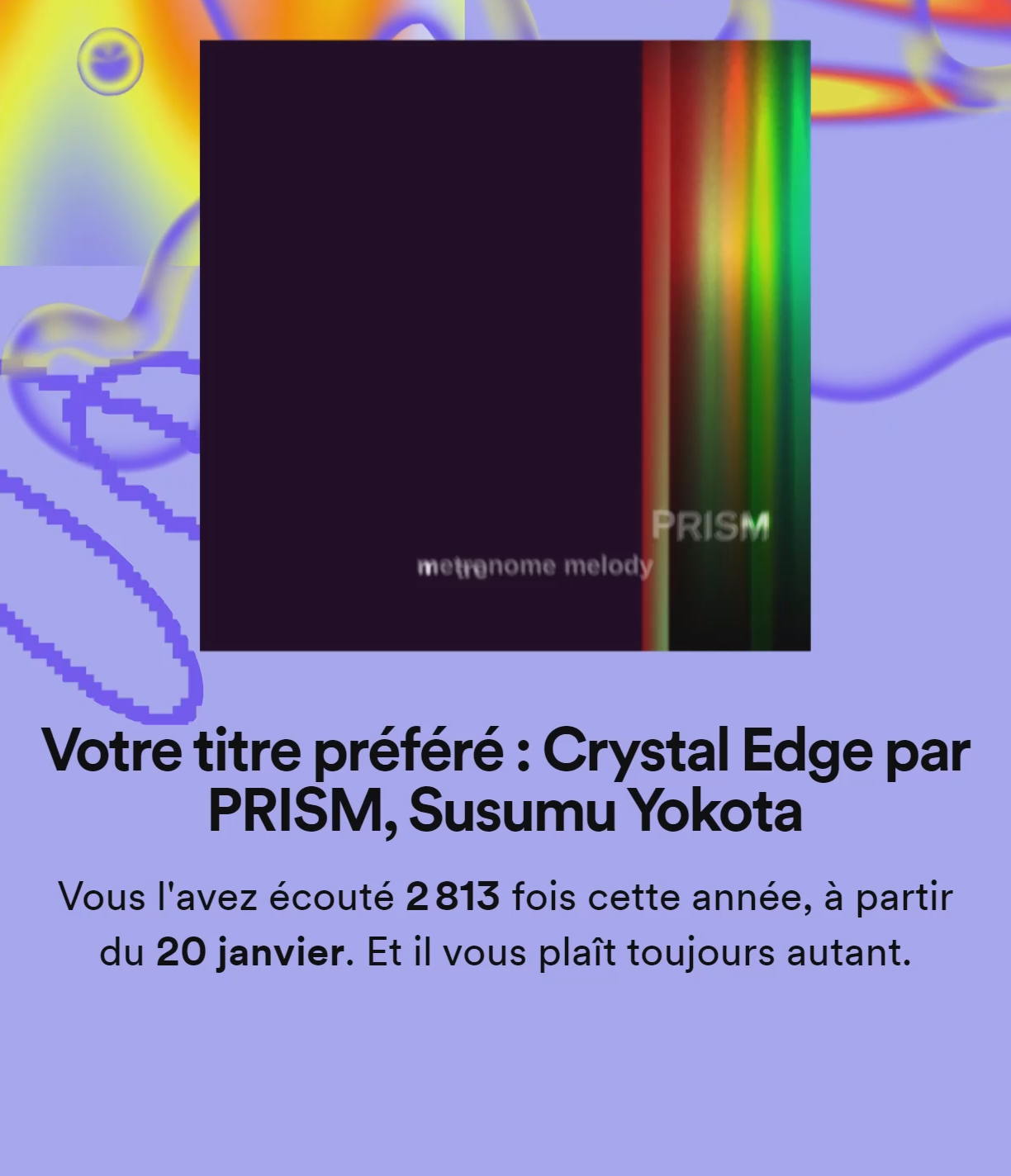 Top 0.001% de ses fans, tu m'étonnes on est que 5.284 dans le monde à l'écouter et c'est moi qui rafle tout les streams alors que Susumu Yokota est décédé en 2015 (paix à son âme)