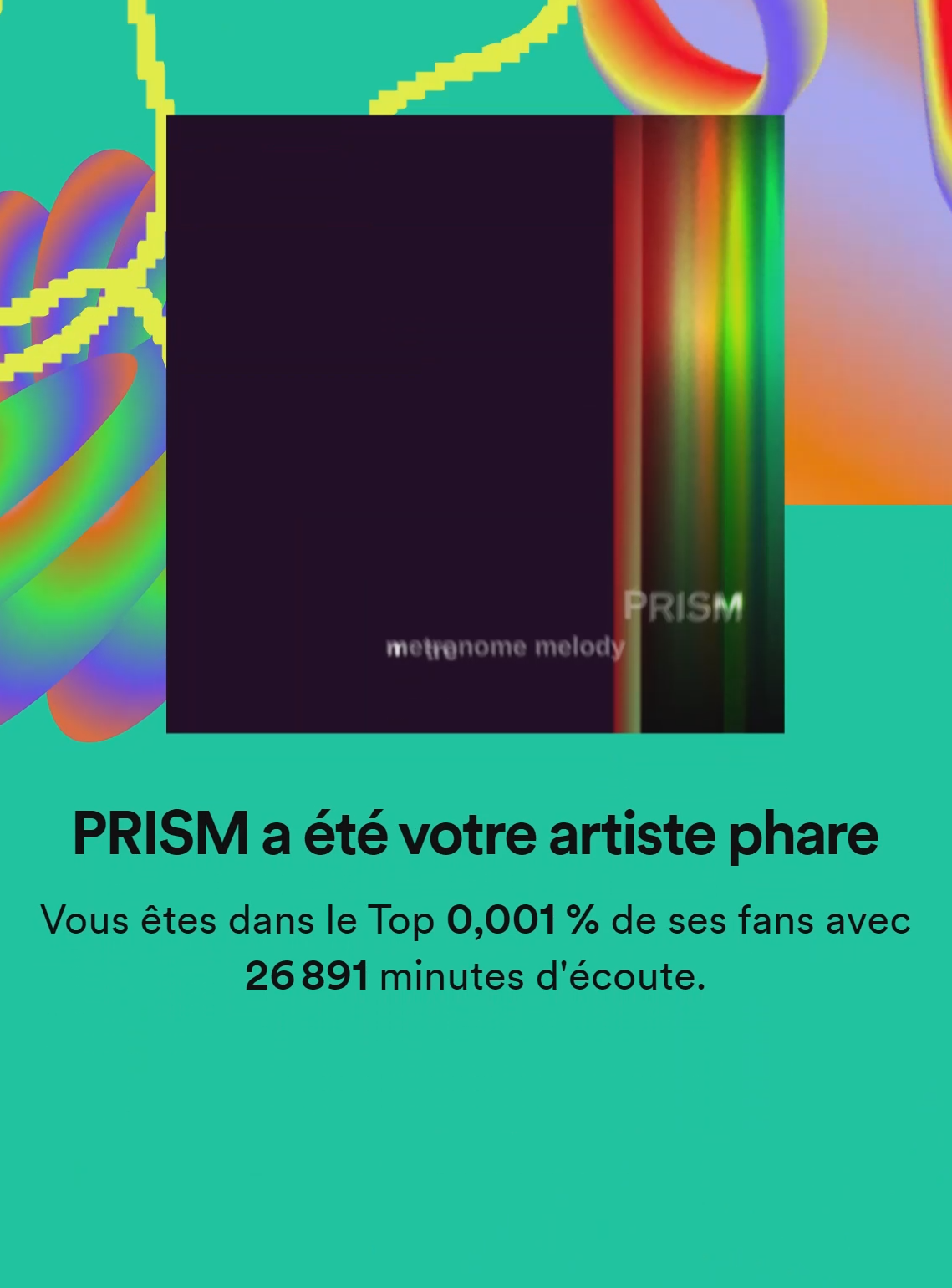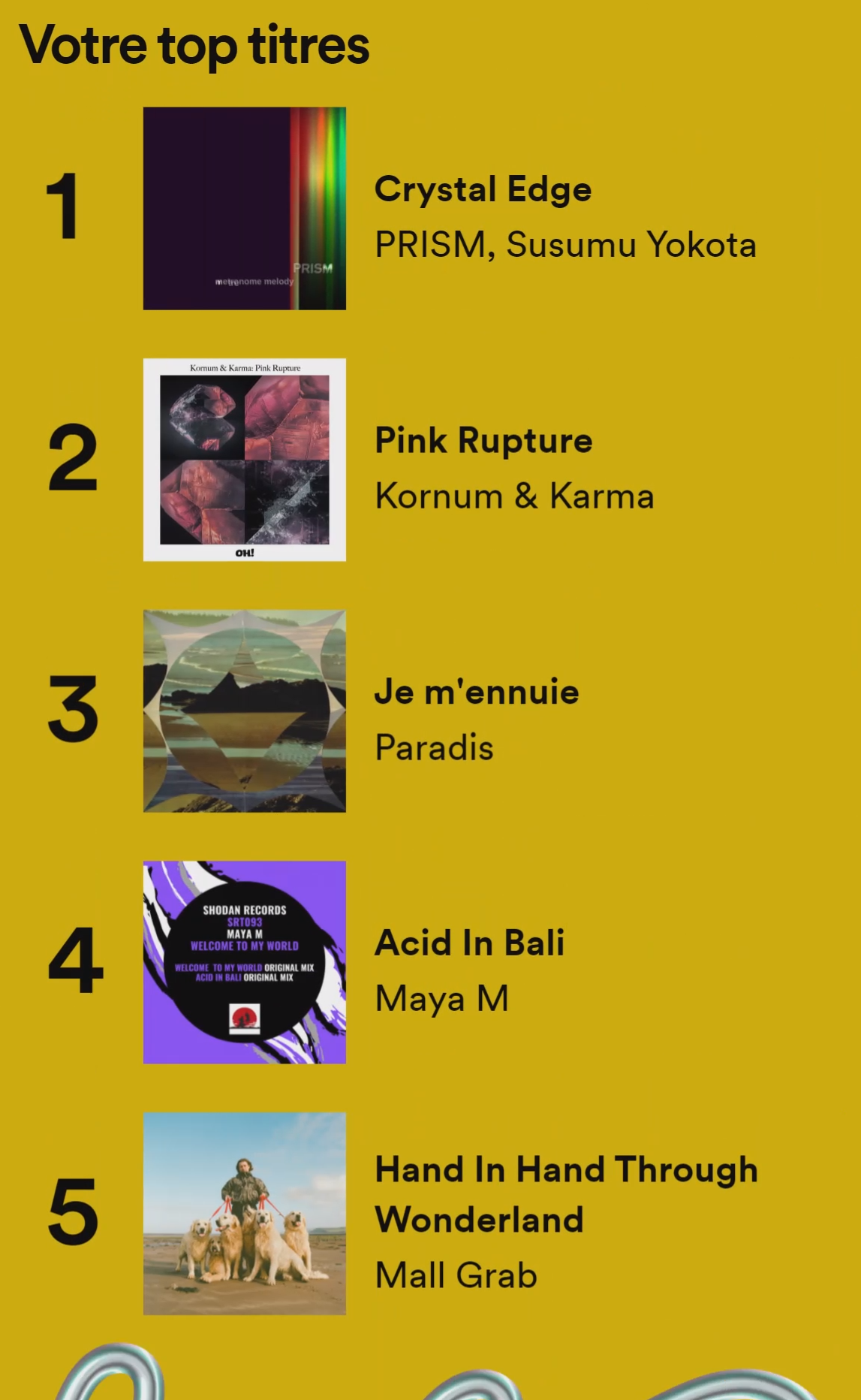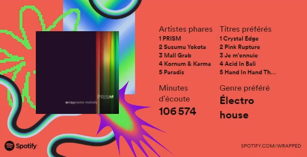C'est catastrophique à cause de mes loops à la con d'un même titre à chaque fois. Genre PRISM, bah oui plus de 2.800 écoutes mais l'album entier de 2h je l'ai peut-être écouté 10x en tout seulement. Dans le top 5 il n'y a que Mall Grab qui est dans le juste. Car même Paradis c'est faussé à cause de ma loop sur le titre "Je m'ennuie" ( https://youtu.be/P-8cZ6Vf2WY ). C'est tellement ça, je m'ennuie tellement que j'ai que ça à foutre