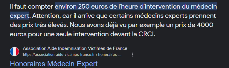 Les avocats spécialisés me disent qu'il faut que je dois quand même payer mes médecins experts et juste pour info :
