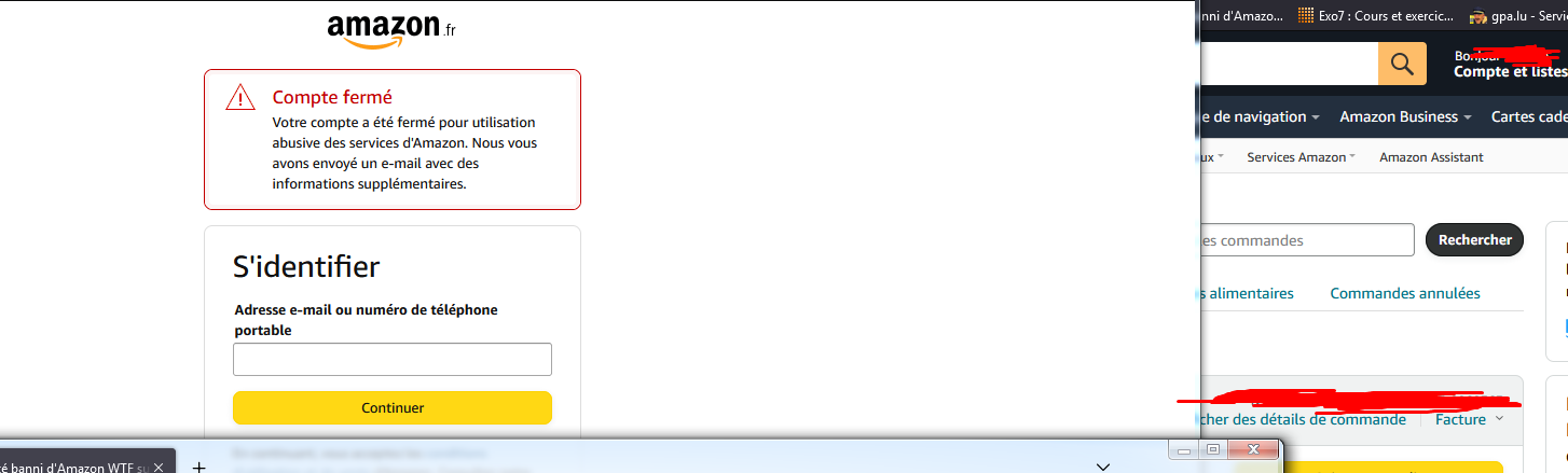 j'ai Amazon depuis 2019, je n'ai jamais eu de souci auparavant, et je viens d'être banni