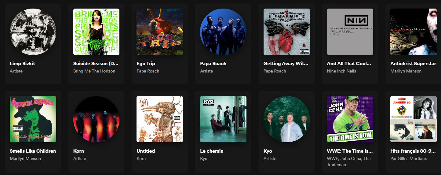 Ensuite ça diffère avec du Bring Me The Horizon, NF, Lil peep, Bad Omens...