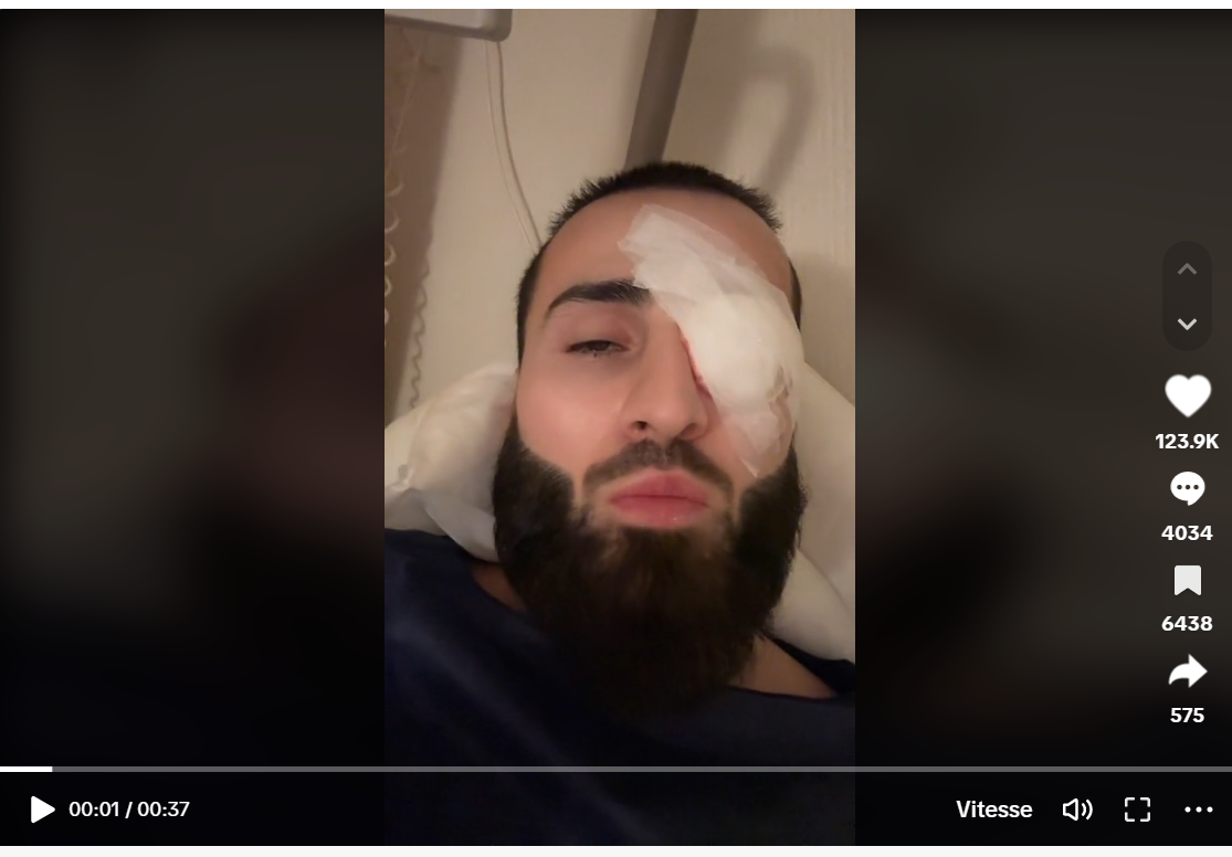Sur la première vidéo, il se film aussi avec la caméra avant de son téléphone et l'œil en question du côté droit brille, (signe d'un décollement de la rétine) donc rien à signaler.