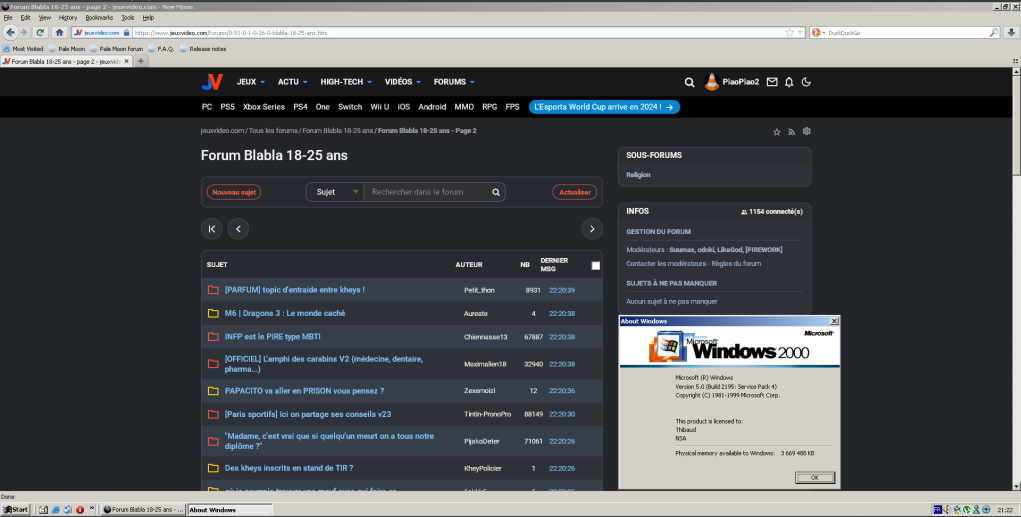 Le 15 décembre 2023 à 22:30:27 :Passe à Windows xp