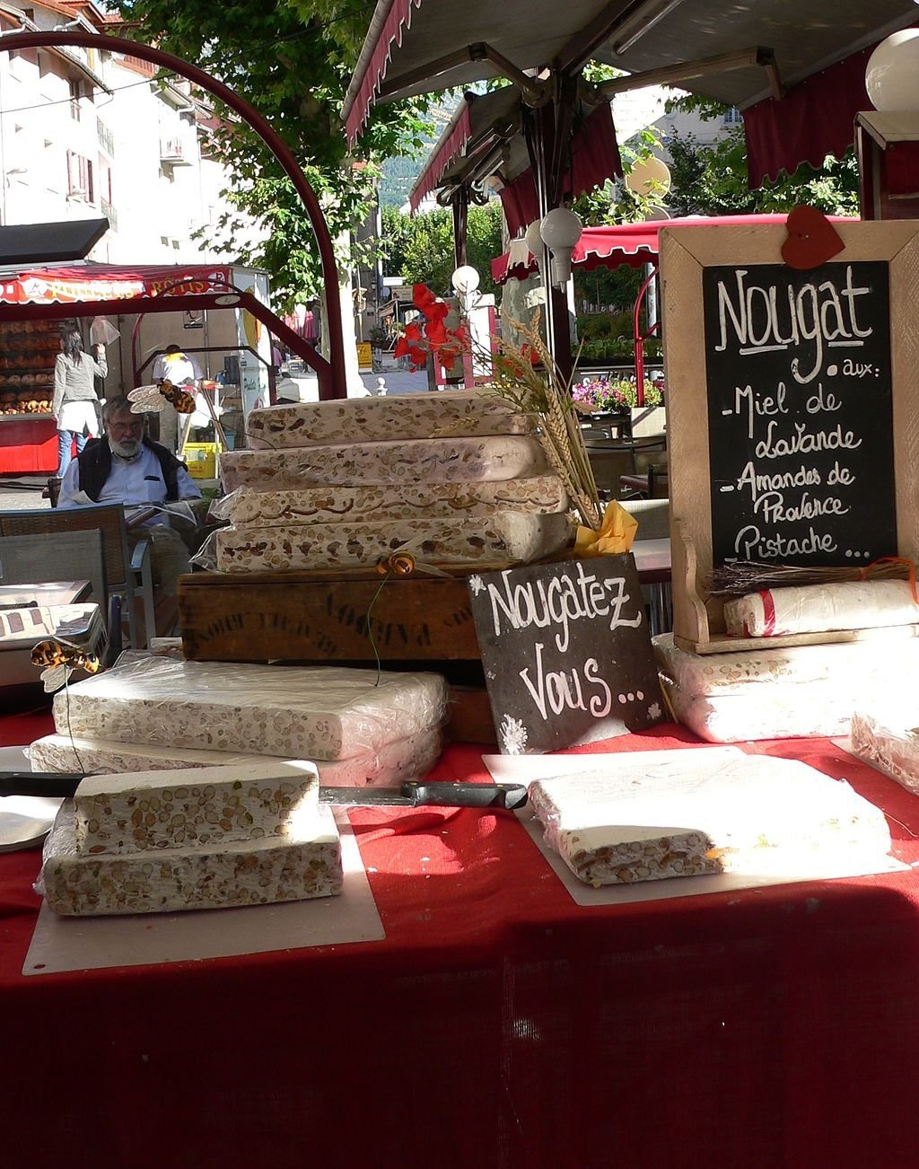 Ca fera 223€la tranchette de nougat bio Oh et vous êtes sympa je vous rajoute un petit gramme gratuit, c'est moi qui régale Ce sera tout?