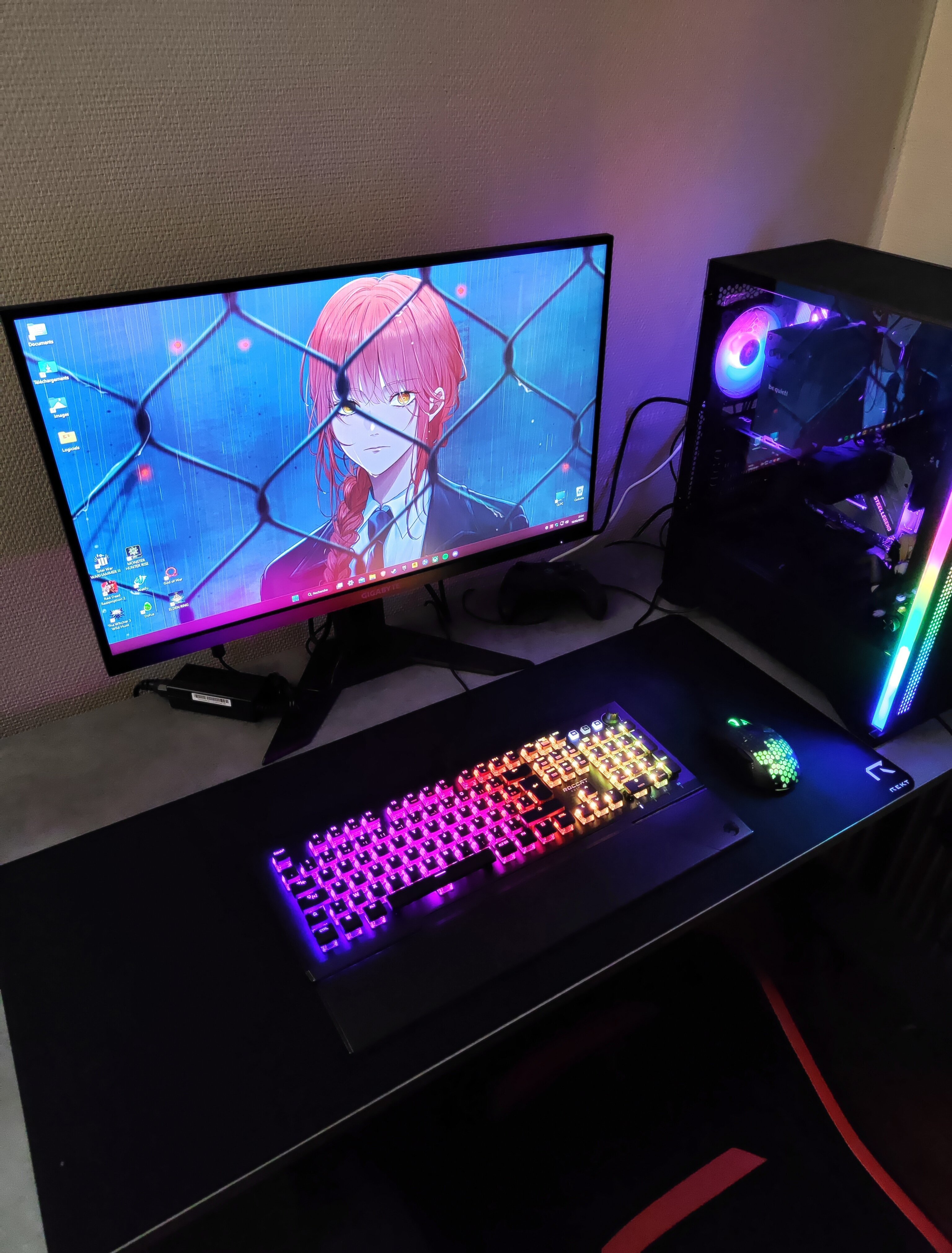 Voilà le miens, avec mon PC fraîchement acquis. Je vais bouger un peu tout, je suis entrain de me faire le setup de simracing de mes rêves, je vais descendre la tour et installer un cockpit à côté de mon bureau
