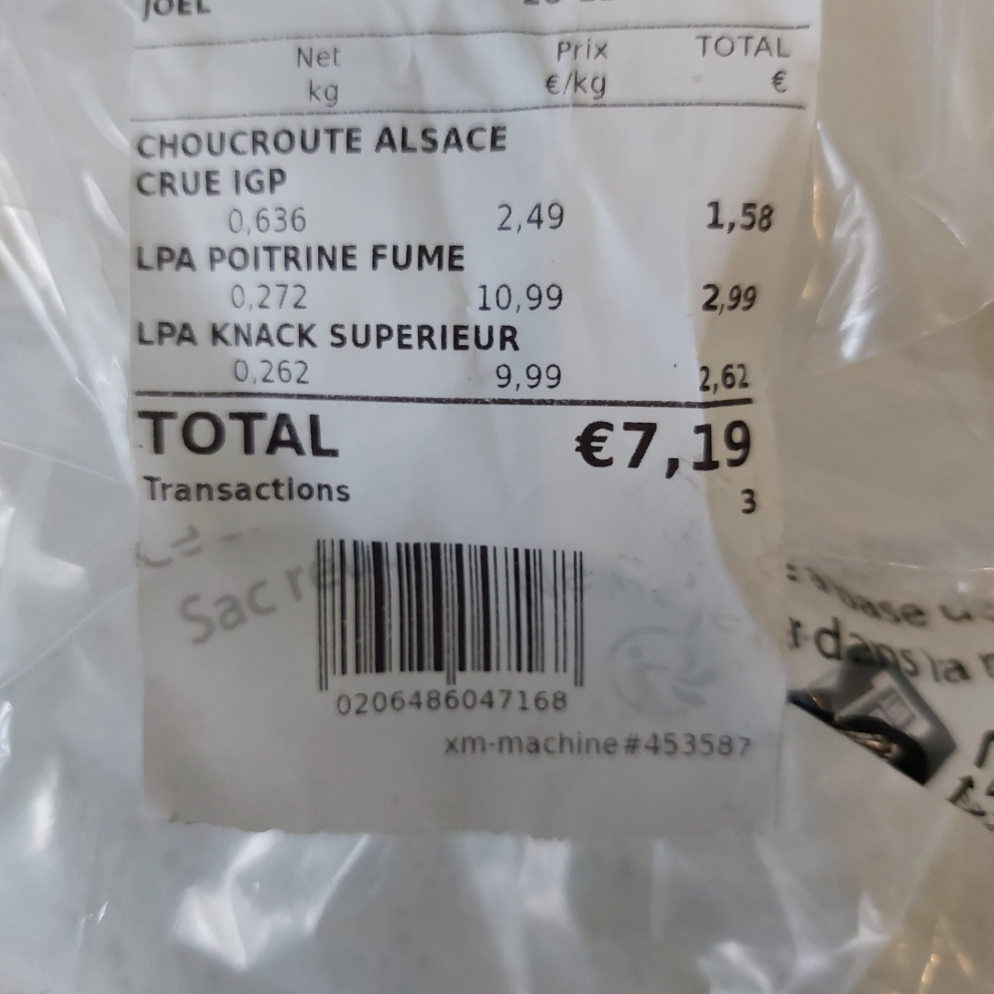 Enfaite il a juste acheté 3 trucs a AuchanL'objectif c'est de réaliser une bonne choucroute avec de la Choucroute cru et donner l'envie aux gens d'en faire,