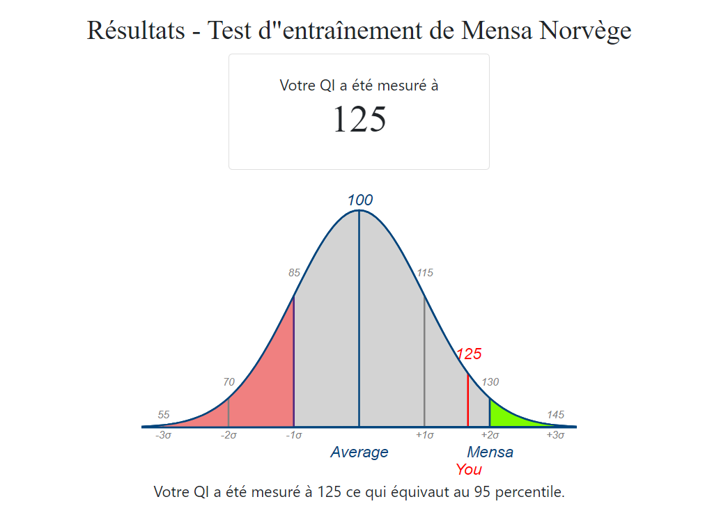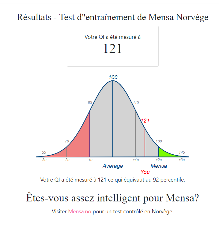 Une distribution normale du QI c’est ça :Ma théorie sur ce forum c’est qu’ici on a plutôt ça :