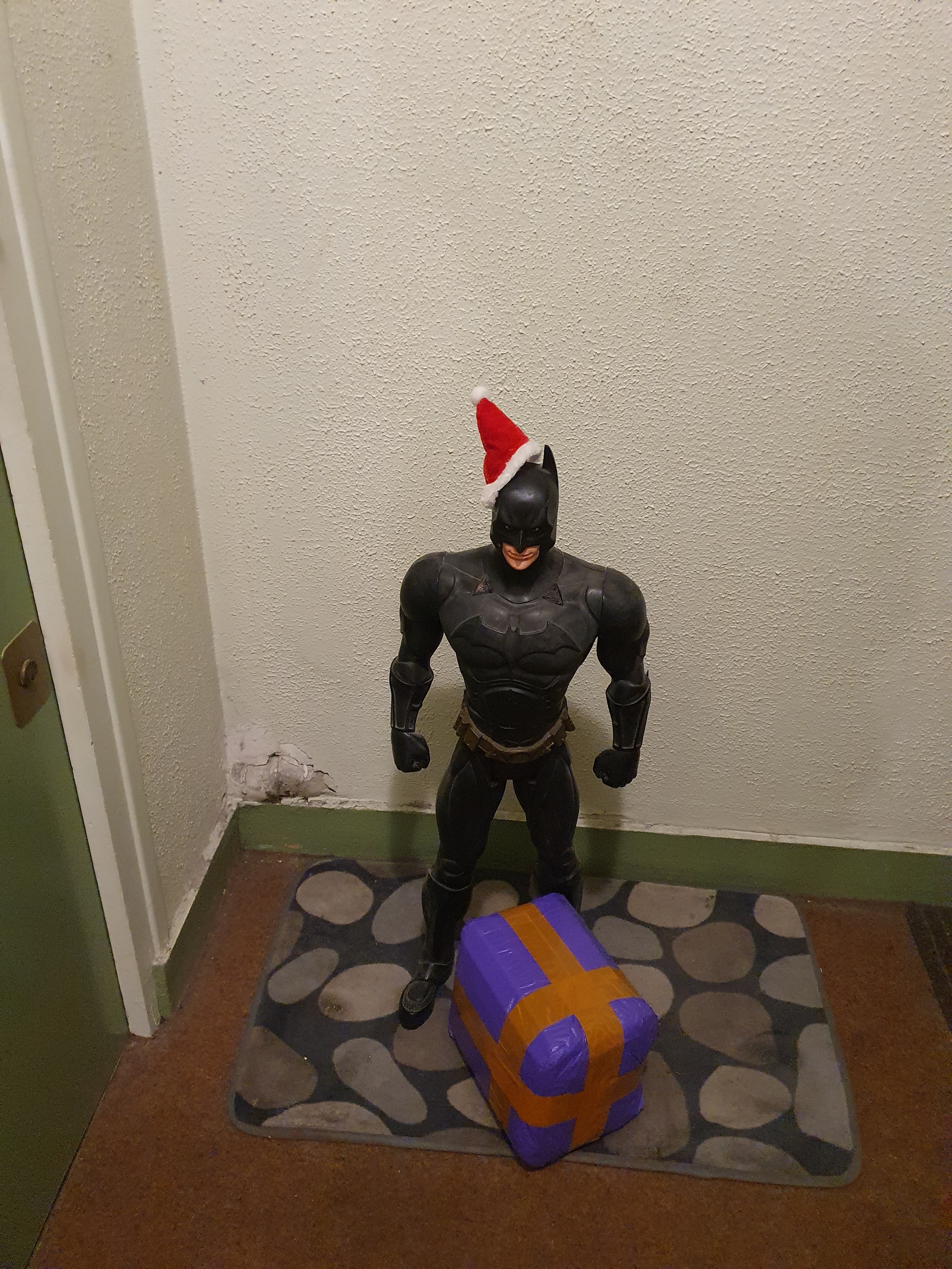 Même le Père Noël n'a pas le droit de pénétrer chez moi, il dépose les cadeaux devant Batman habillé pour l'occasion
