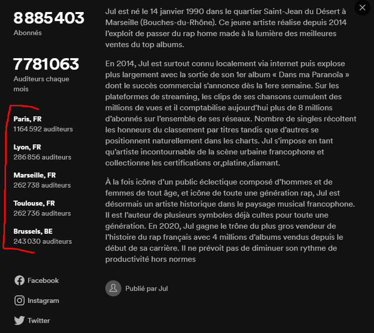 Jul est écouté par tout le monde, il est le numéro 1 partout. Mais ça n'empêche pas qu'il fait du rap et qu'il vienne de banlieue. J'vois pas en quoi faire des clichés sur ses supposés auditeurs change quoique ce soit sur la musique