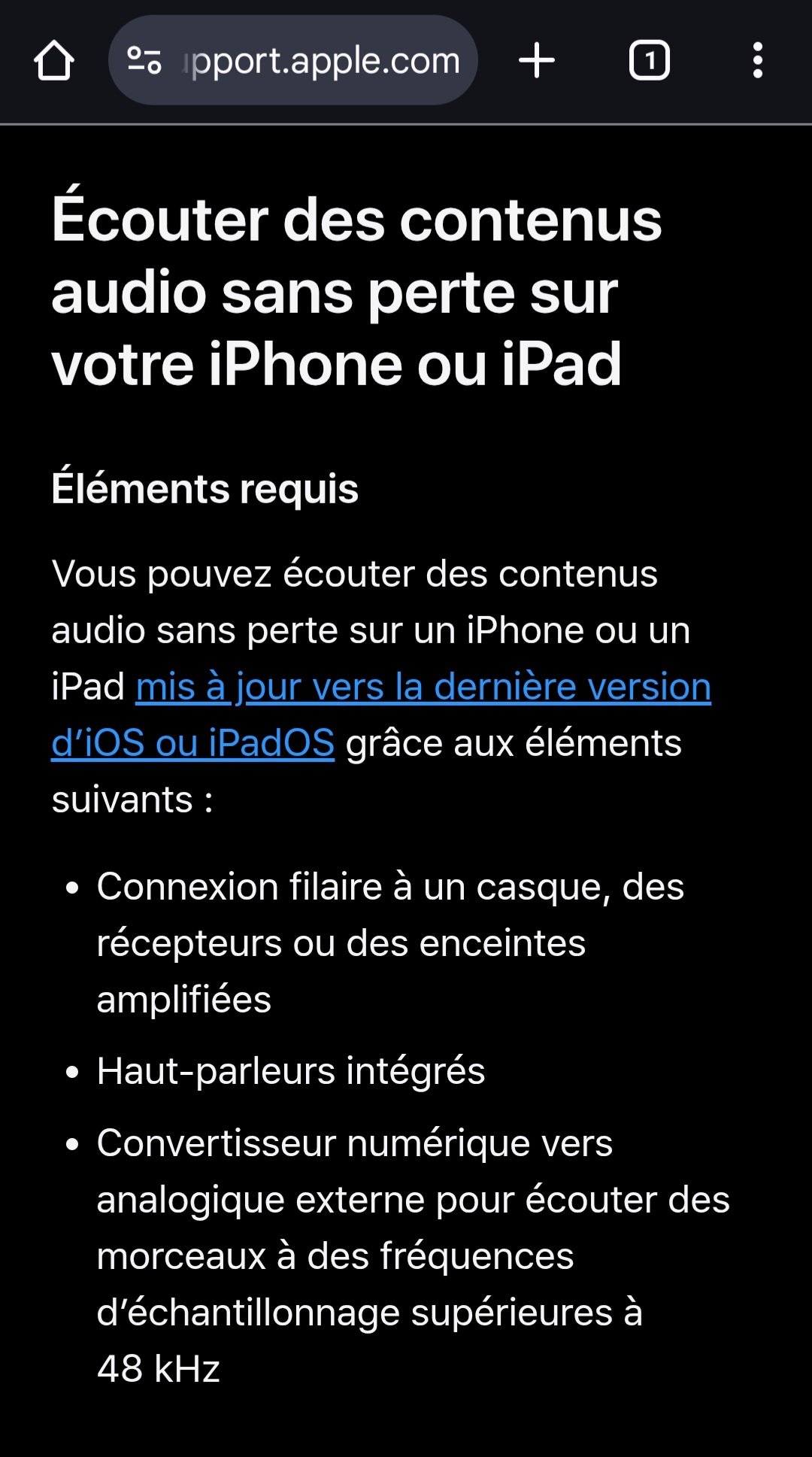 Ce screen je viens de le capturé sur le site Apple,donc oui il prend en charge les fichiers sans perte mais seulement en filaire,je trouve çà abusé pour un casque qui ce dit bluetooth nomade et surtout au vue du prix