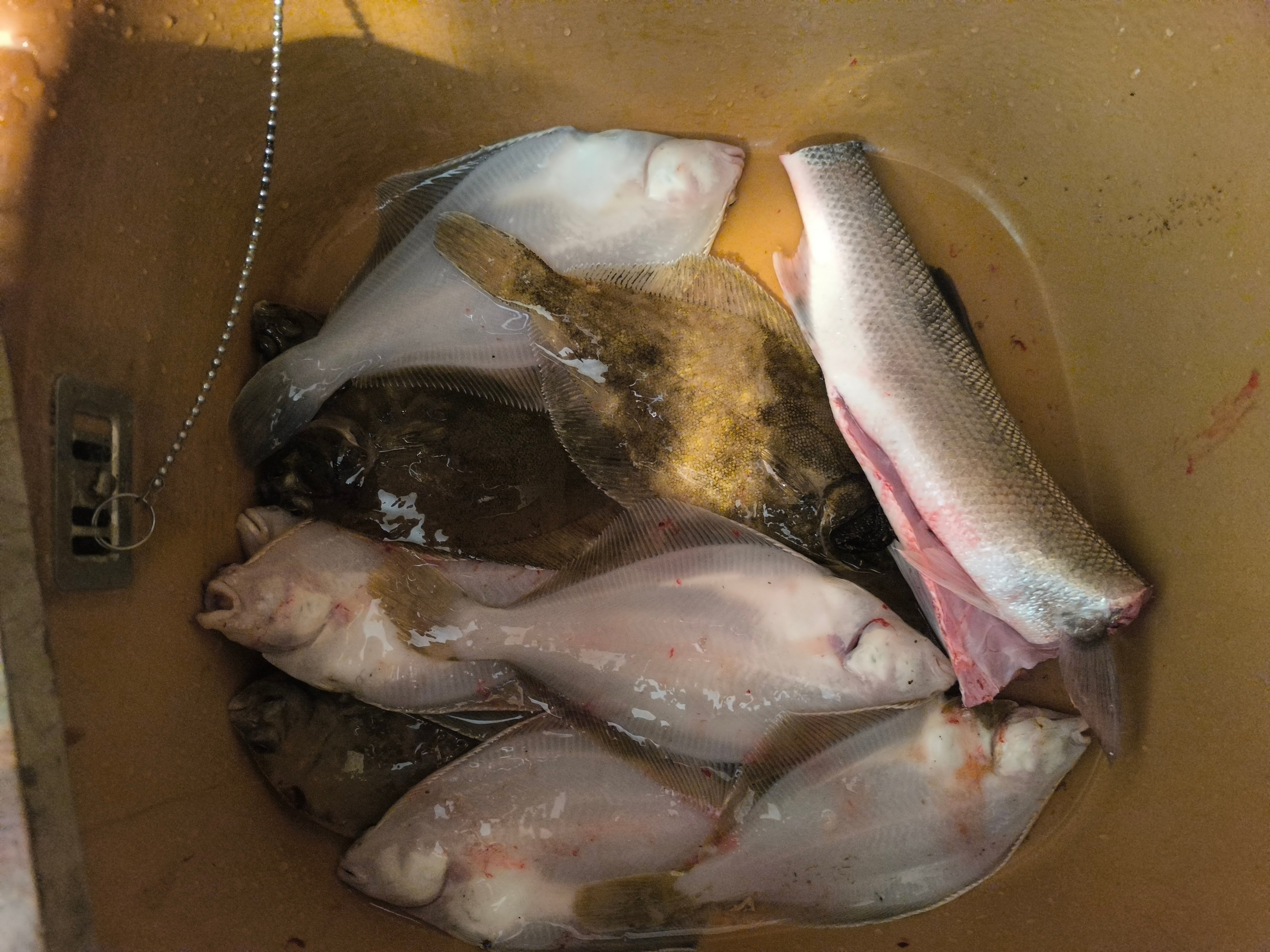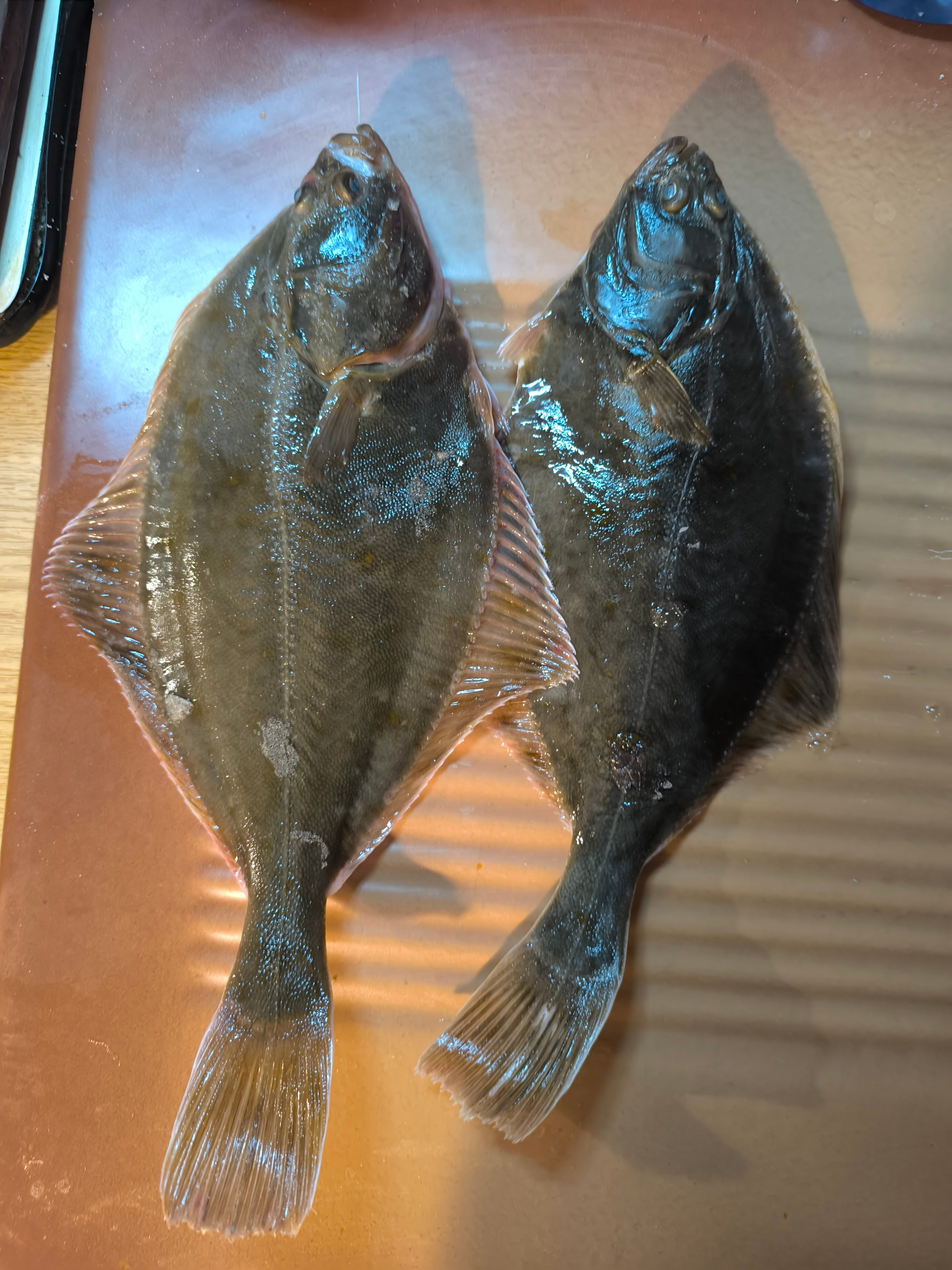 Petite sortie entre deux gouttes d'eau, 2 Flet de belle tailles et beaucoup de petits merlans.