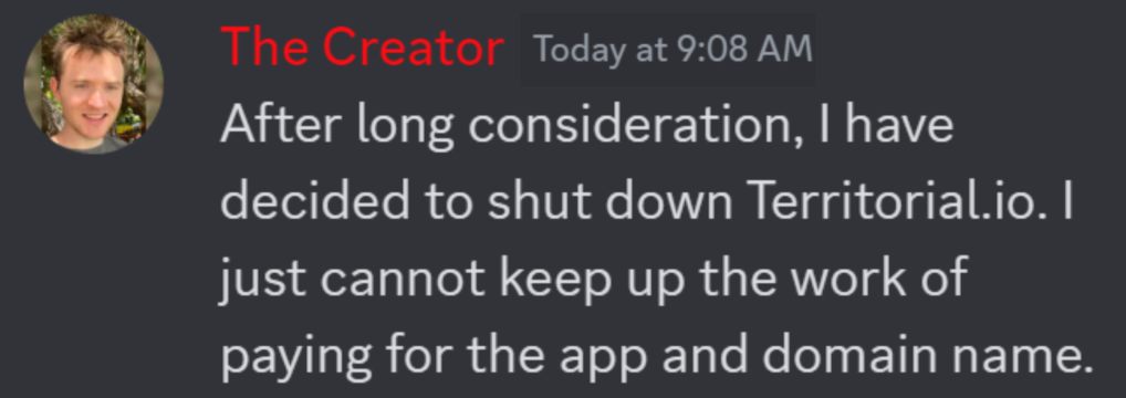 Le 21 février 2024 à 09:37:58 : apparement le créateur du jeu veut shut down les serveurs car pas assez de revenus, bordel chaud J'imagine que c'est fake nonobstant