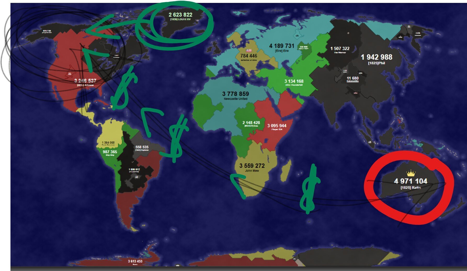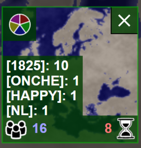 C'est l'équipe avec le + de territoires qui gagne la paixOui mais c'est chiant, genre j'ai du strat avec un mec (le blanc) pour éliminer un gars surpuissant (le jaune) tout en ne faisant pas gagner une autre équipe qui combiné était aussi puissante que le jaune (les roses), le déroulement à fait que c'est le blanc qui a gagné mais c'est une victoire à 2, on avait fait un pacte et on conclu la paix à la fin, ça devrait donner au moins un petit peu de points juste pour le symbole