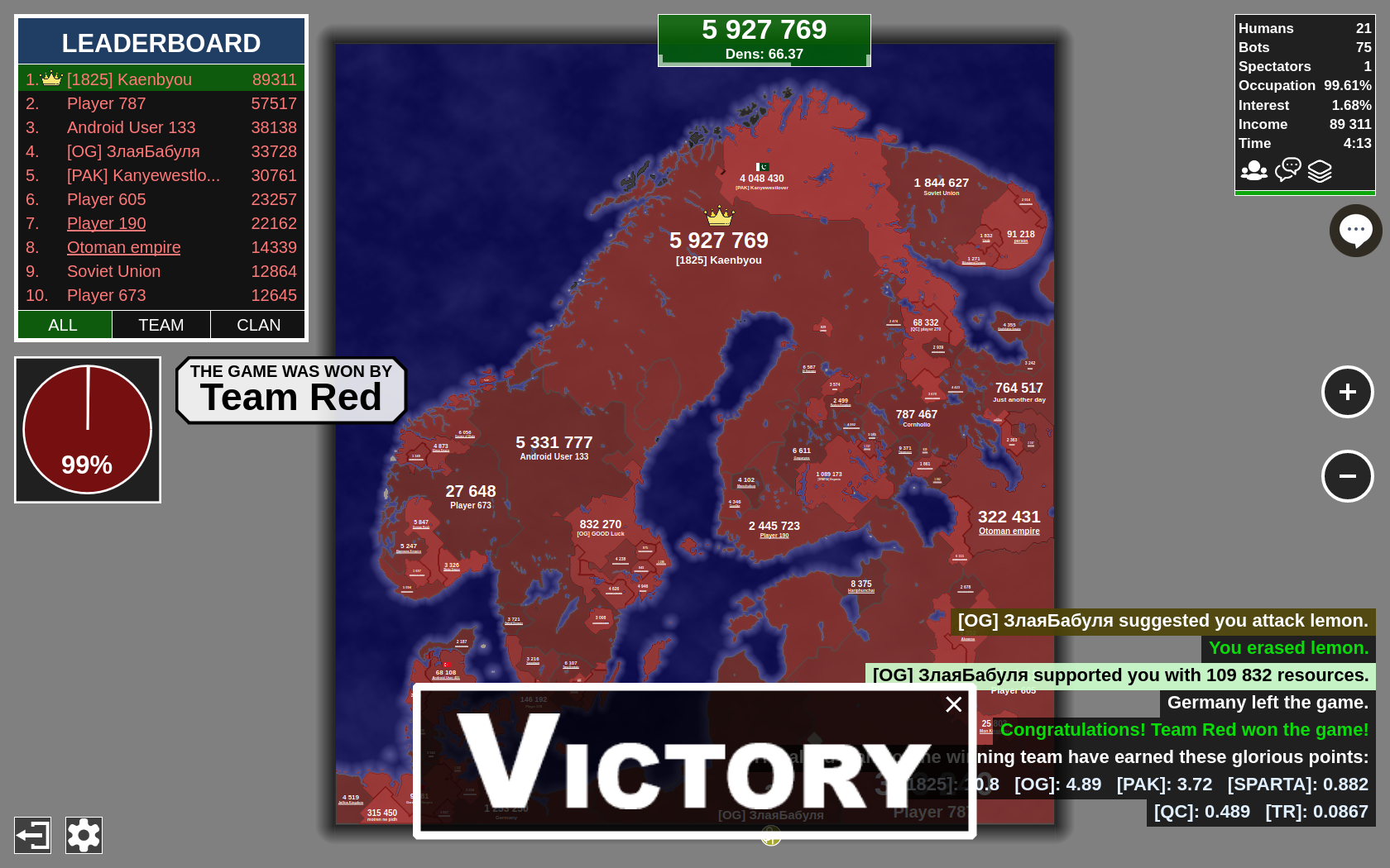 M'en voulez pas si je full send mais quand on perd avec 20% de territoire vs 70 pour l'adversaire c'est pas la peine de perdre du temsp