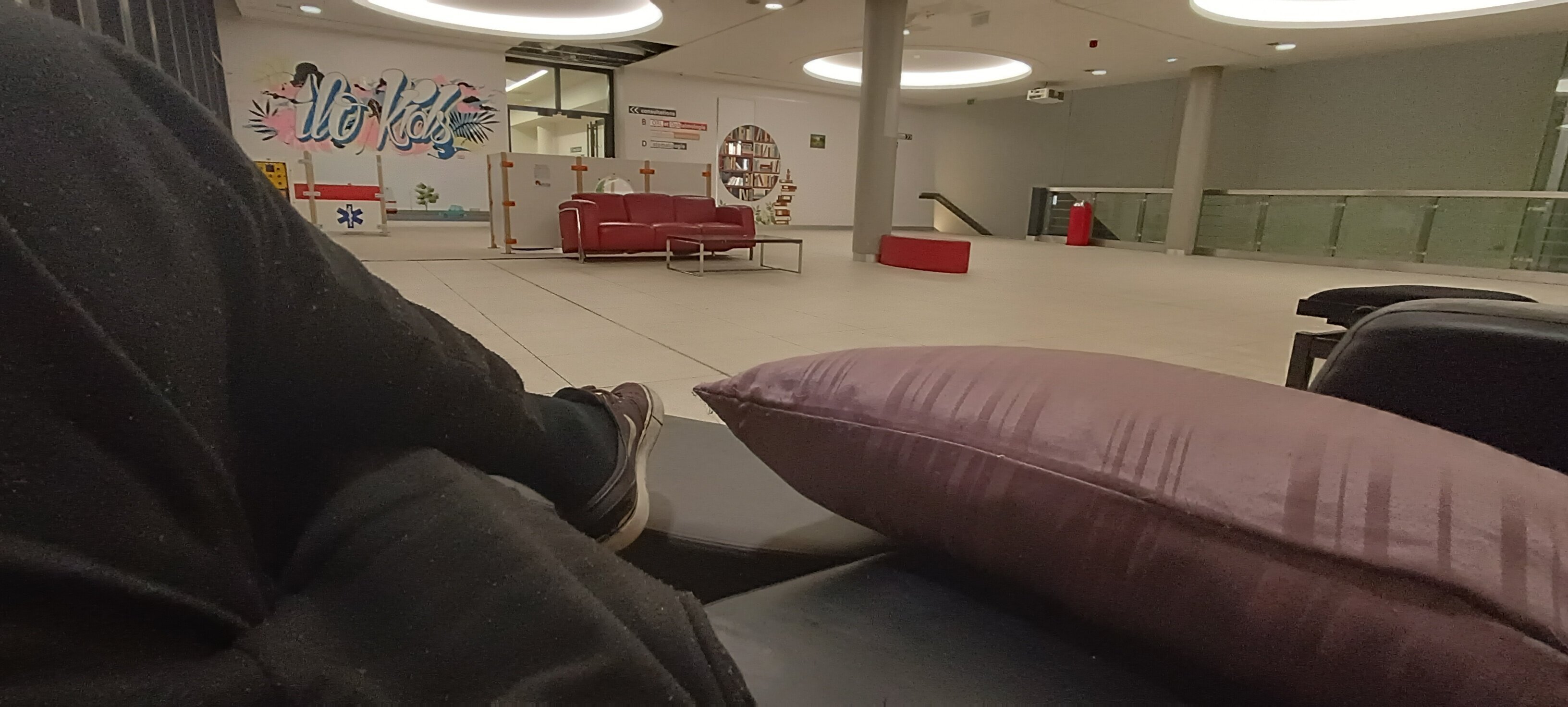 J'attend dans la salle d'attendre de l'hôpital jusqu'à temps me faire dégager par la sécu qui va commencer à tourner à partir de 20h