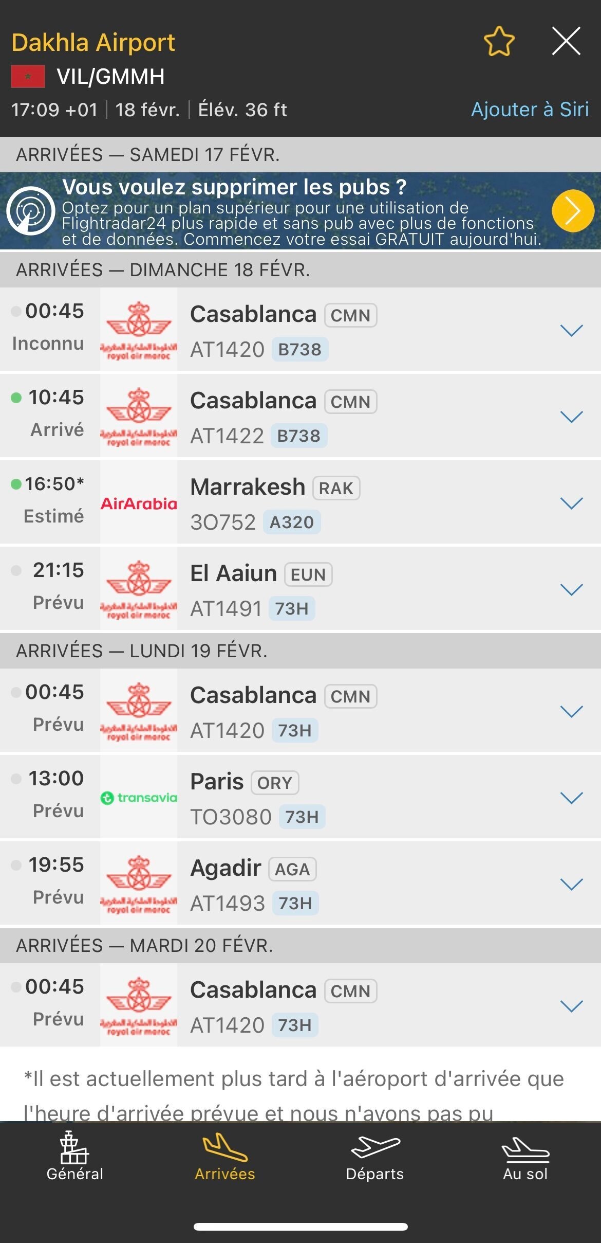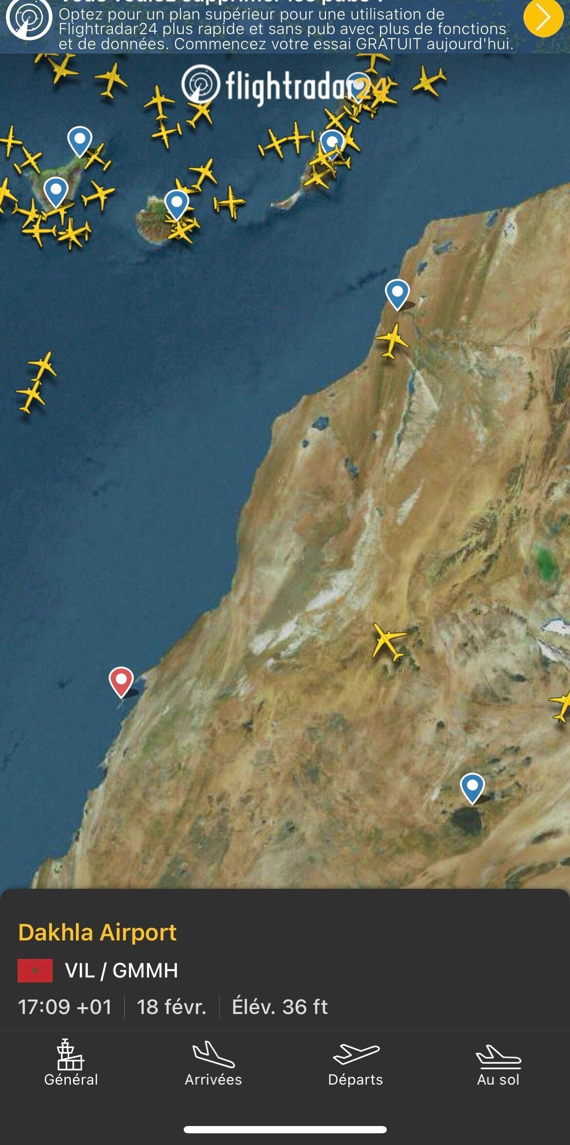 En plus de ça les seuls vols qui arrivent à Dakhla sont ceux de la Royal air Maroc ou air Arabia Maroc.